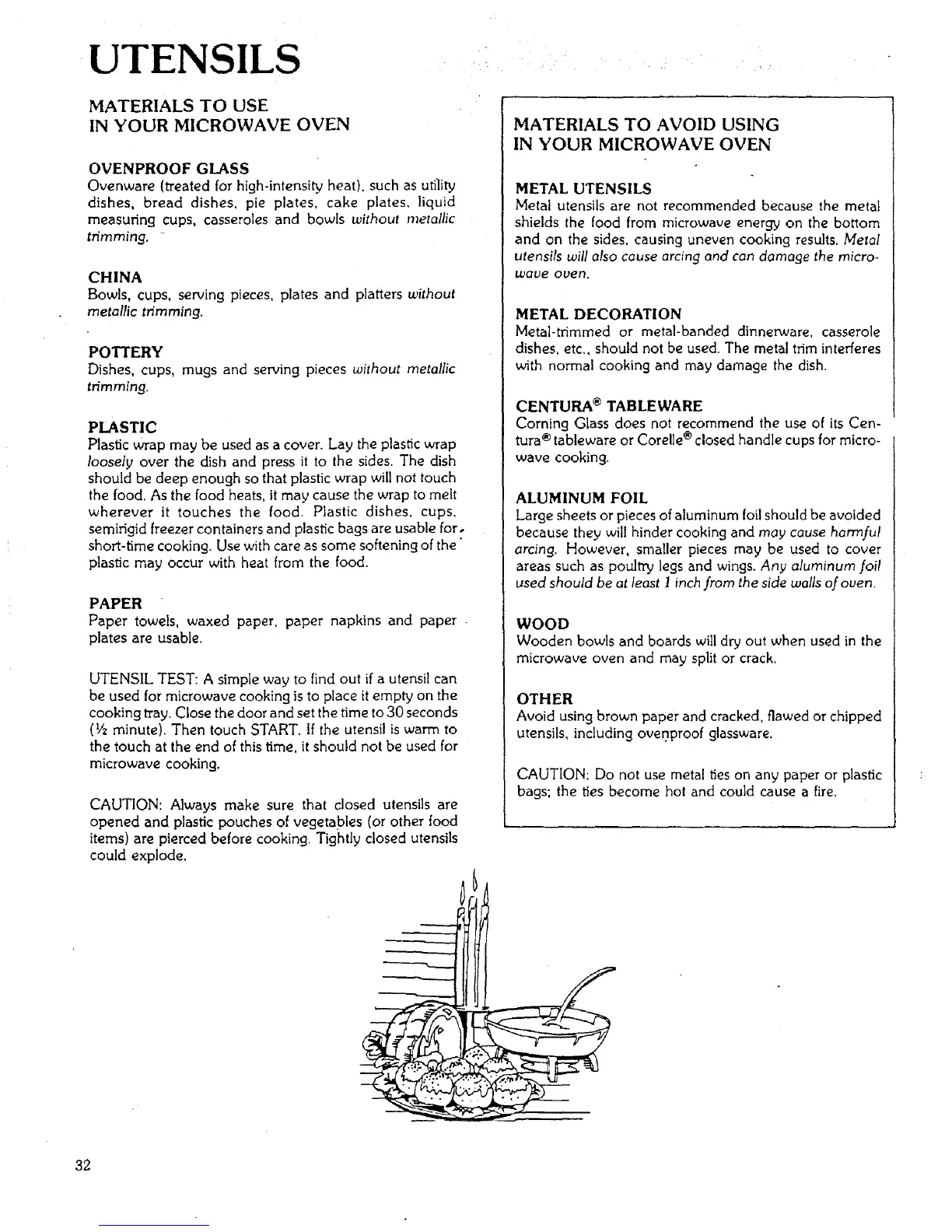 utensils, including ovenproof glassware.