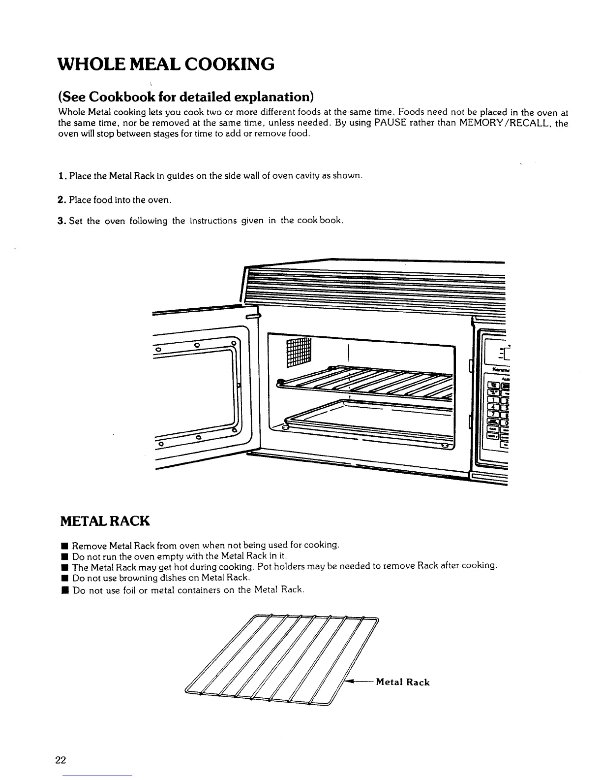 • The Metal Rack may get hot during cooking. Pot holders may be needed to remove Rack after cooking.