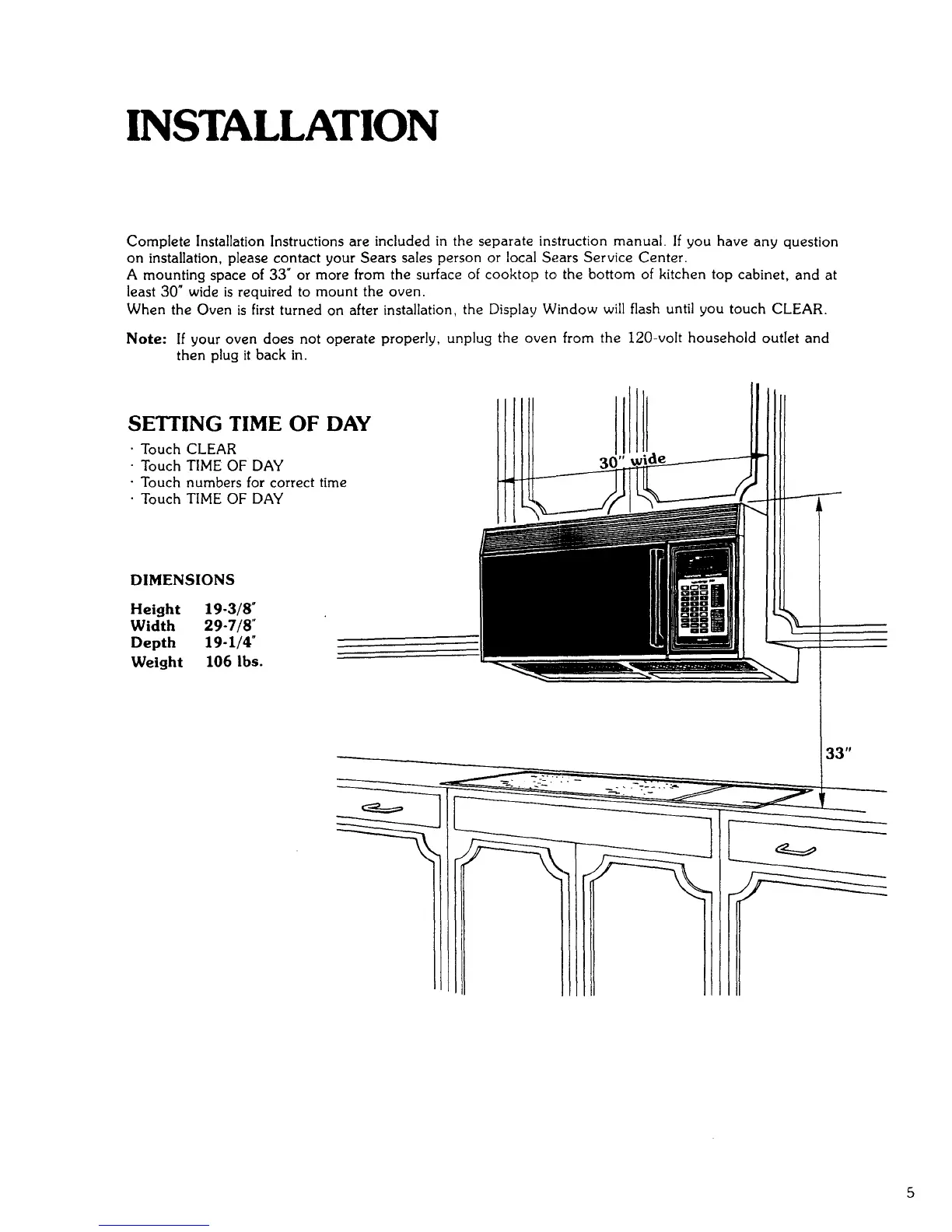 on installation, please contact your Sears sales person or local Sears Service Center.