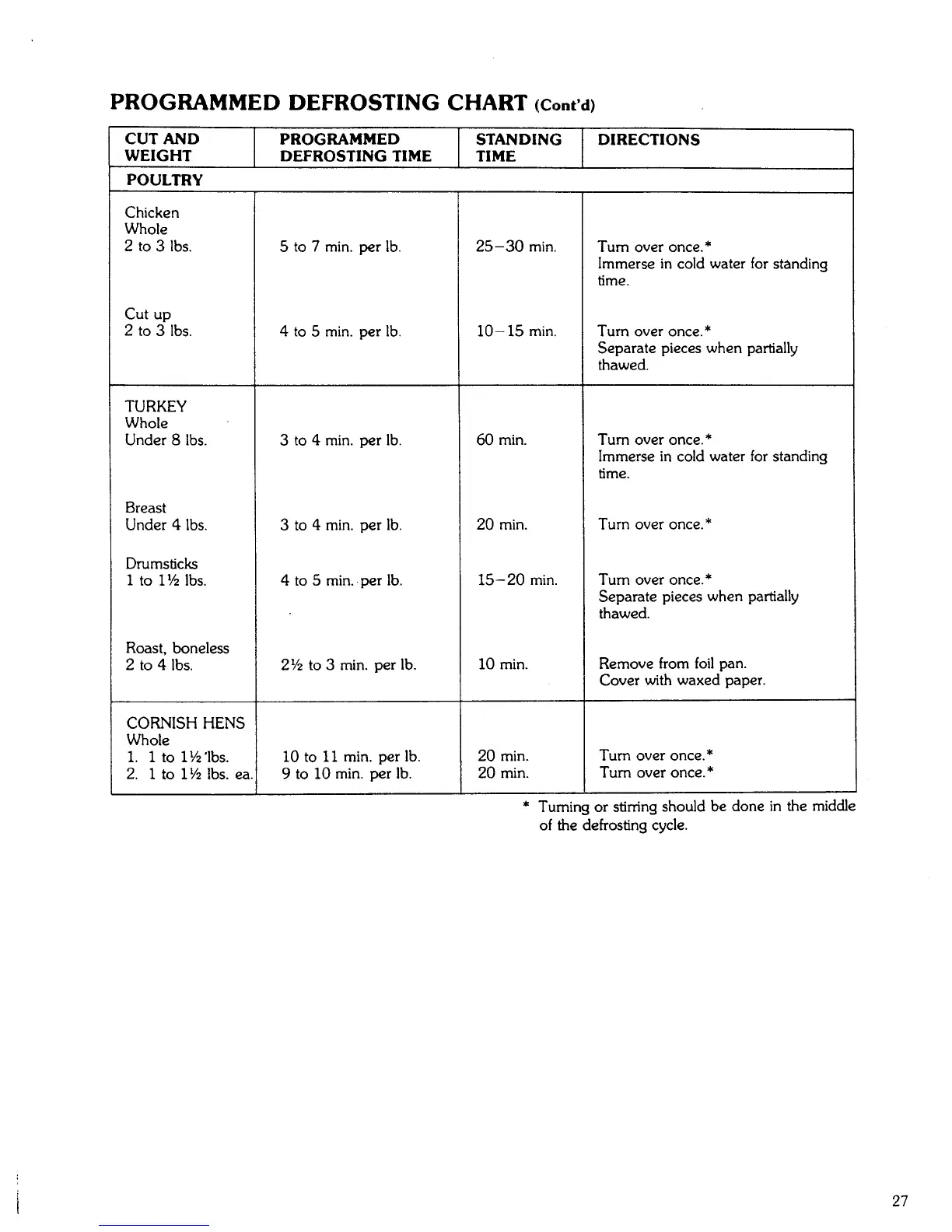 PROGRAMMED DEFROSTING CHART (Cont'd)