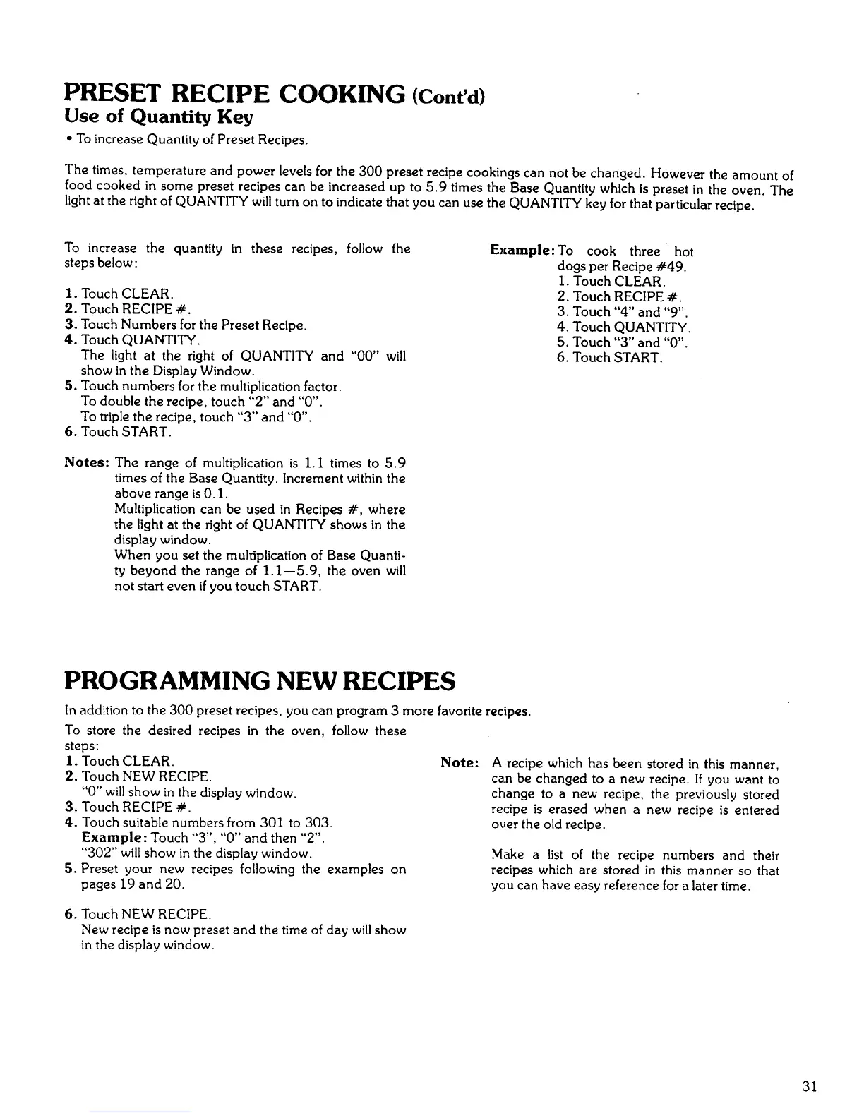 PRESET RECIPE COOKING (Cont'd)