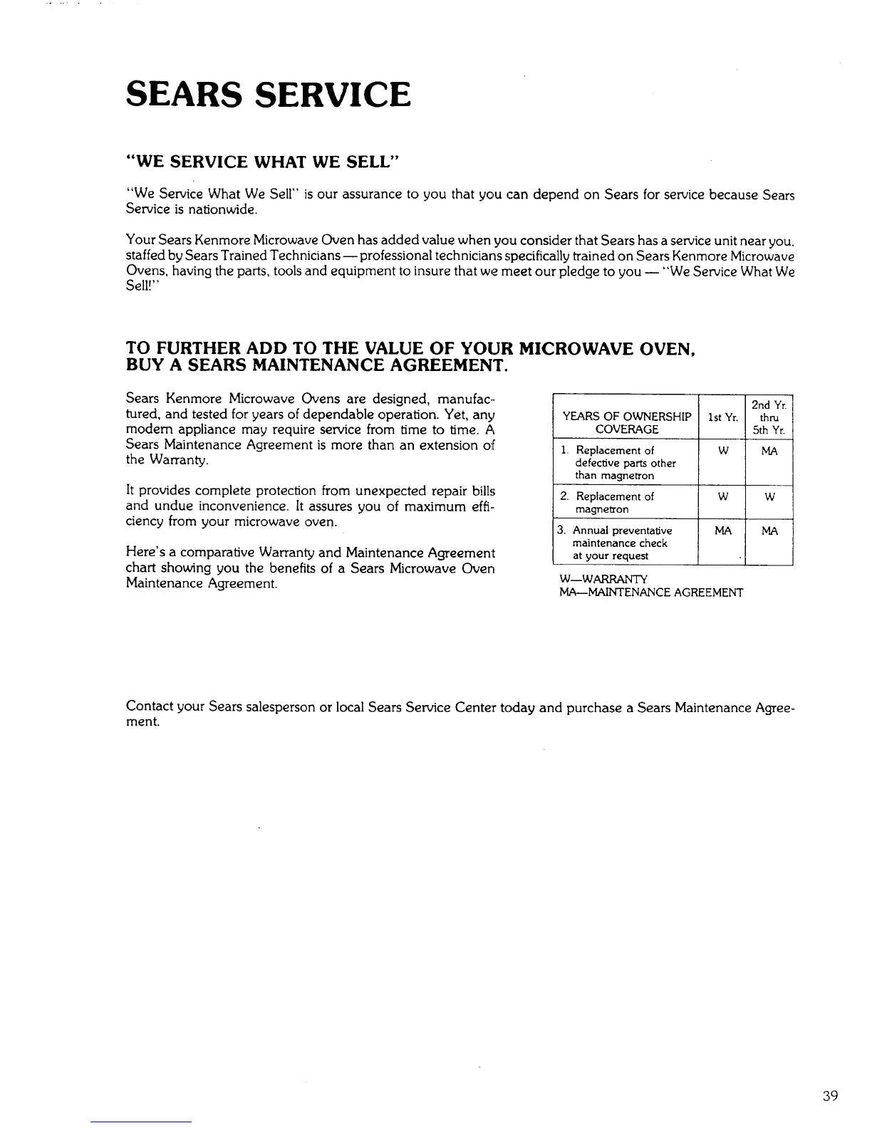 BUY A SEARS MAINTENANCE AGREEMENT.