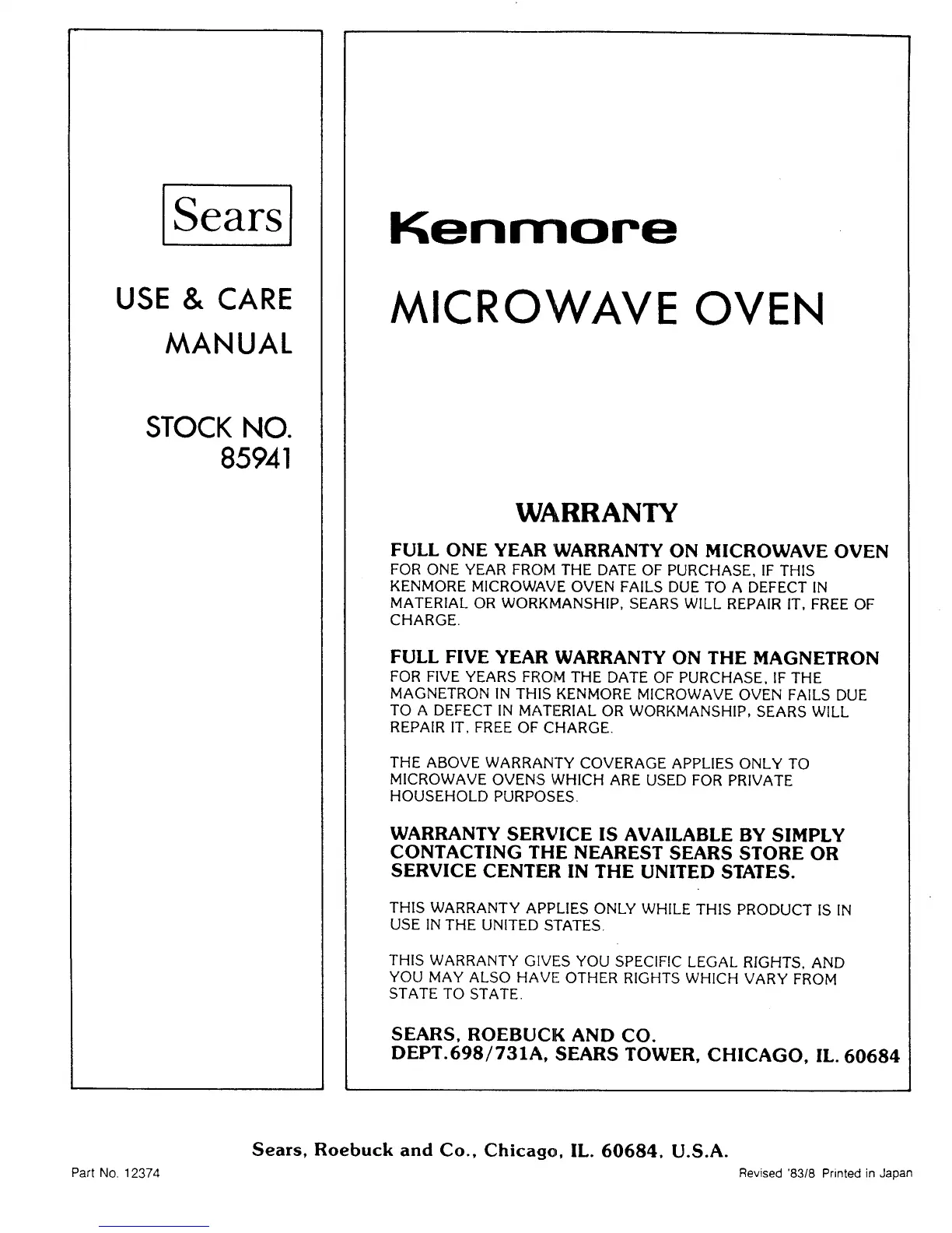 Sears, Roebuck and Co., Chicago, IL. 60684, U.S.A.