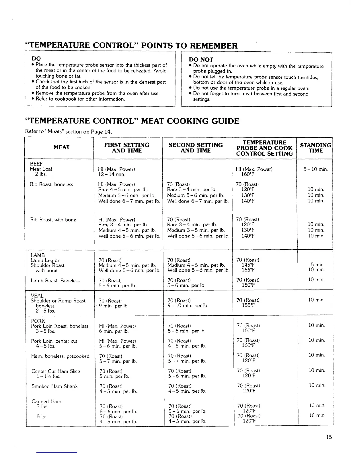 "TEMPERATURE CONTROL" MEAT COOKING GUIDE