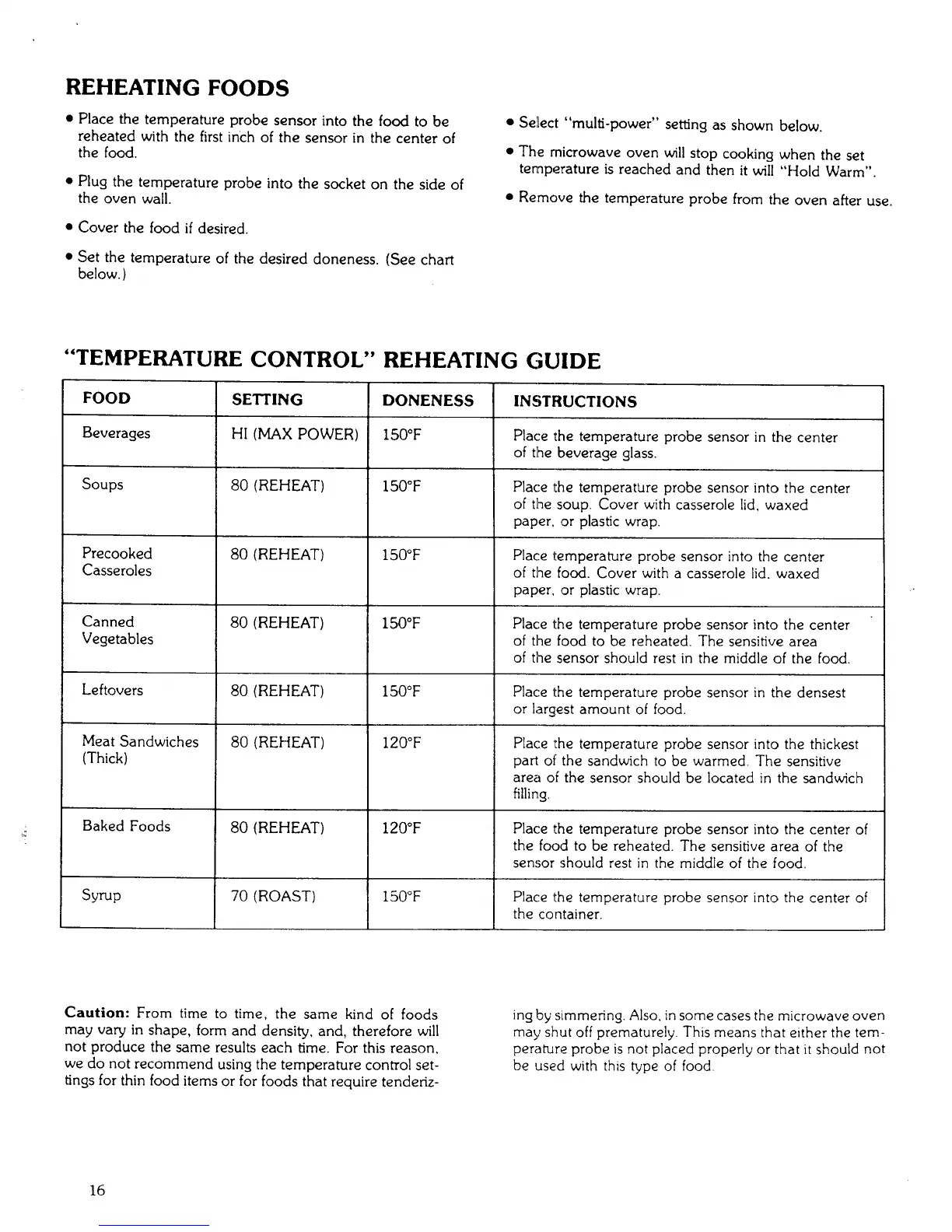 "TEMPERATURE CONTROL" REHEATING GUIDE