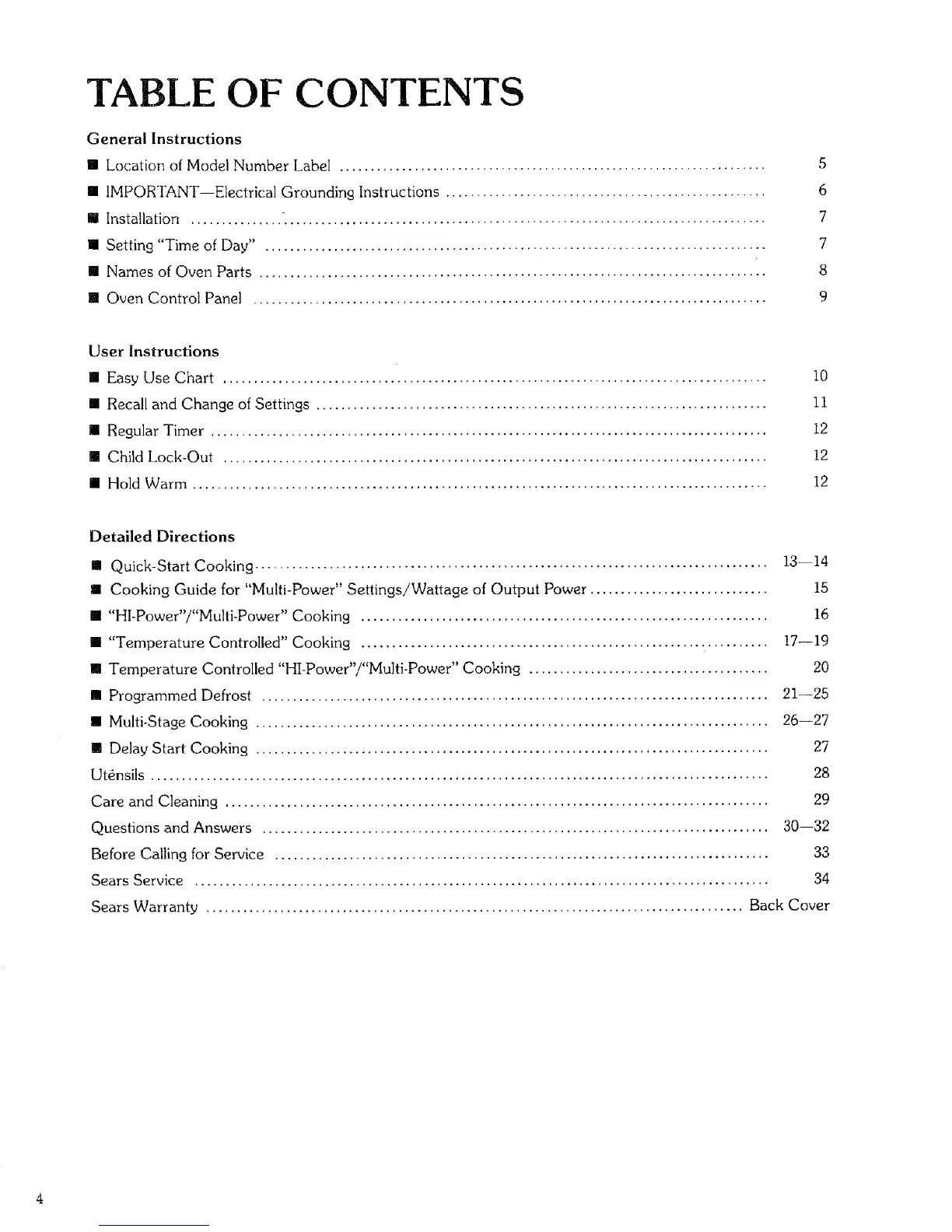 Sears Service ............................................................................................. 34
