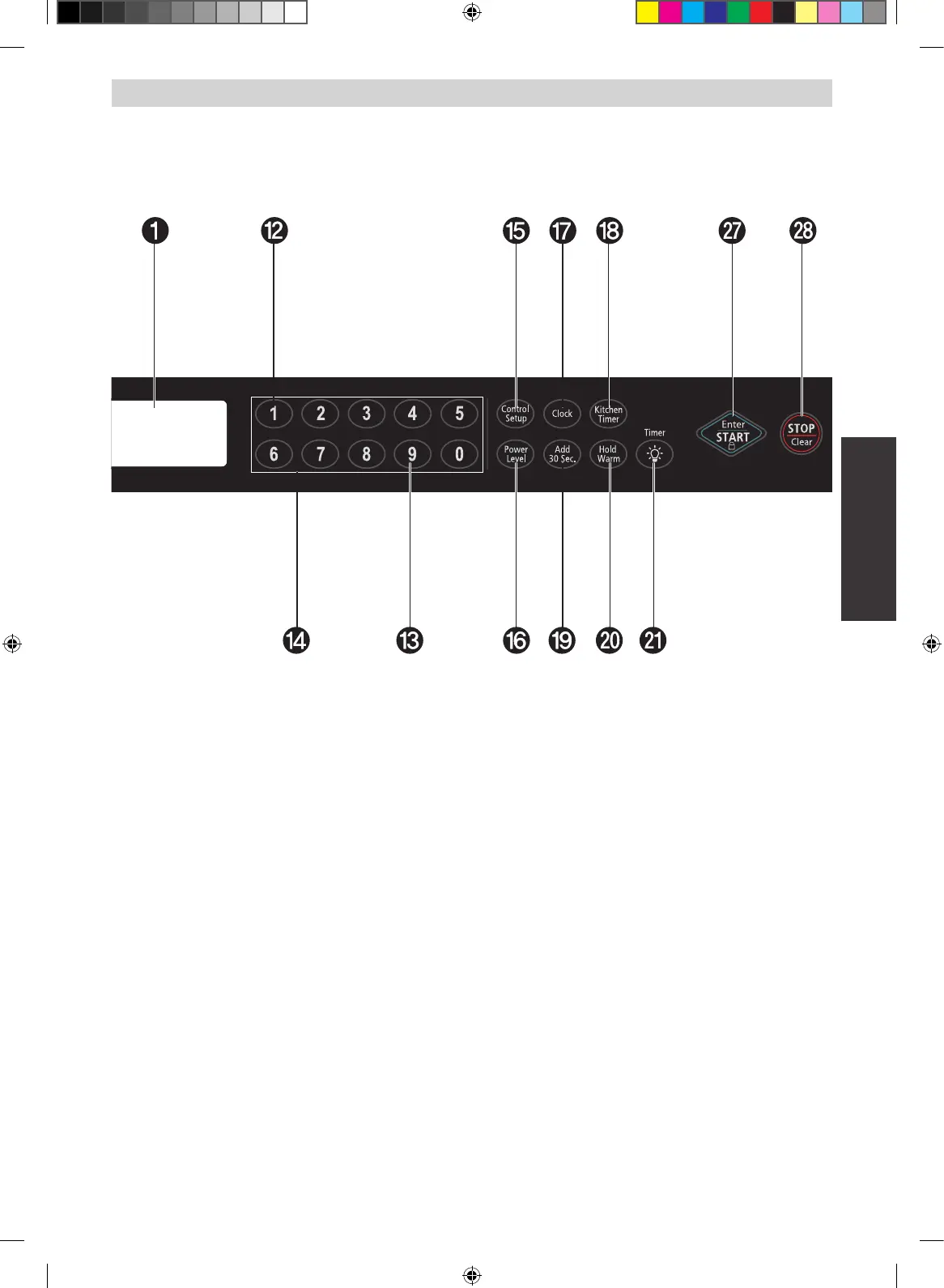 14 NUMBER: Touch number pads to enter cooking