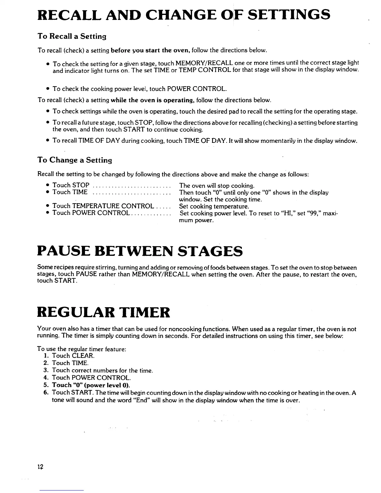 stages, touch PAUSE rather than MEMORy/RECALL when setting the oven. After the pause, to restart the oven,