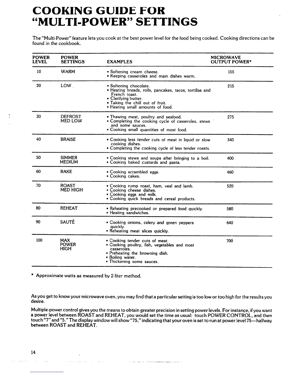 The "Multi-Power" feature lets you cook at the best power level for the food being cooked. Cooking directions can be