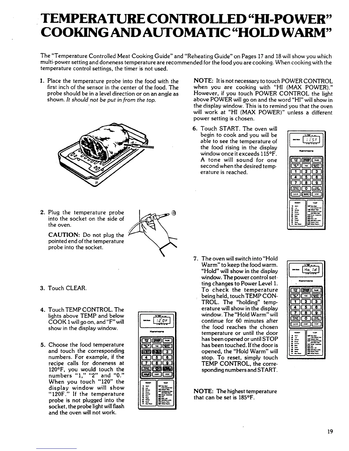 The "Temperature Controlled Meat Cooking Guide" and "Reheating Guide" on Pages 17 and 18 will show you which