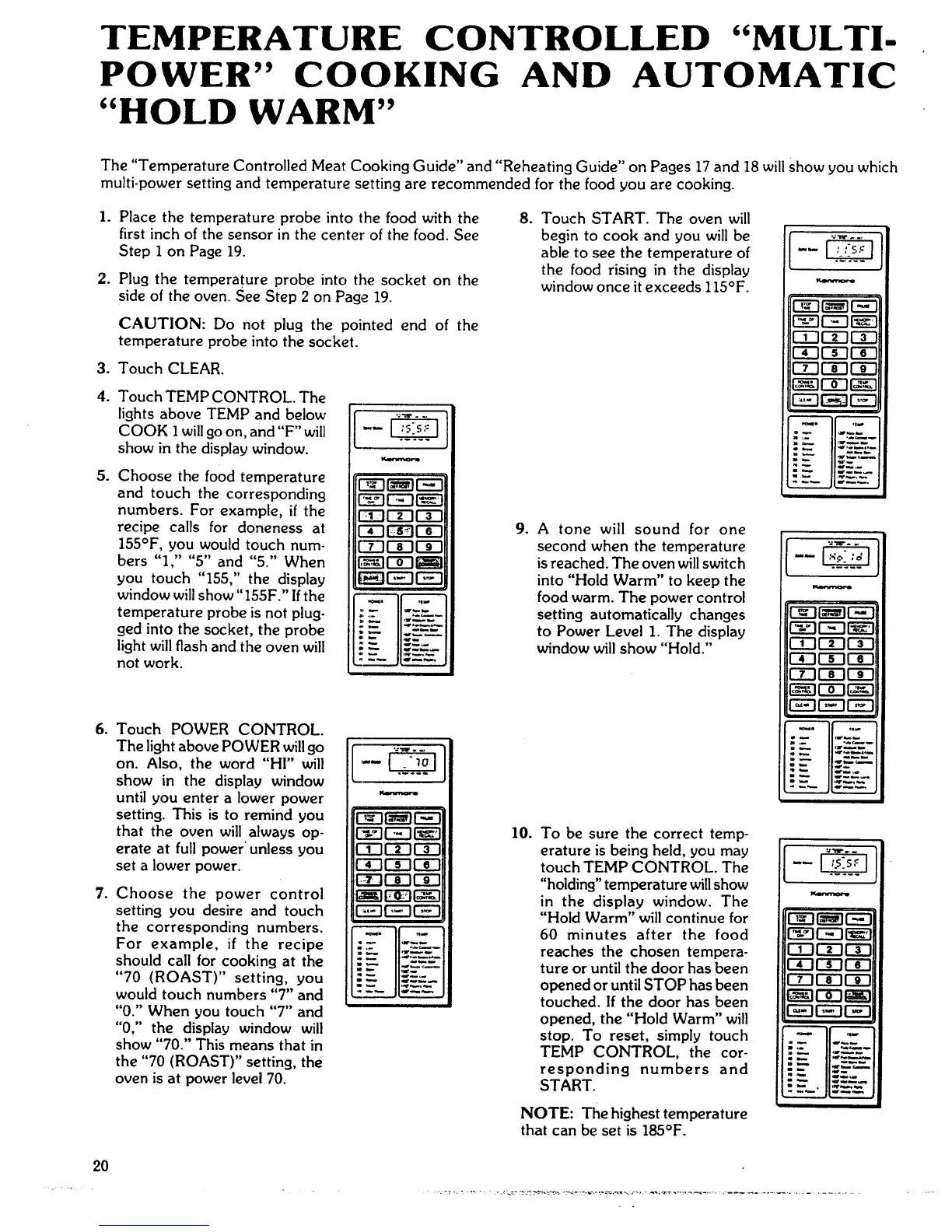 The "Temperature Controlled Meat Cooking Guide" and "Reheating Guide" on Pages 17 and 18 will Show you which