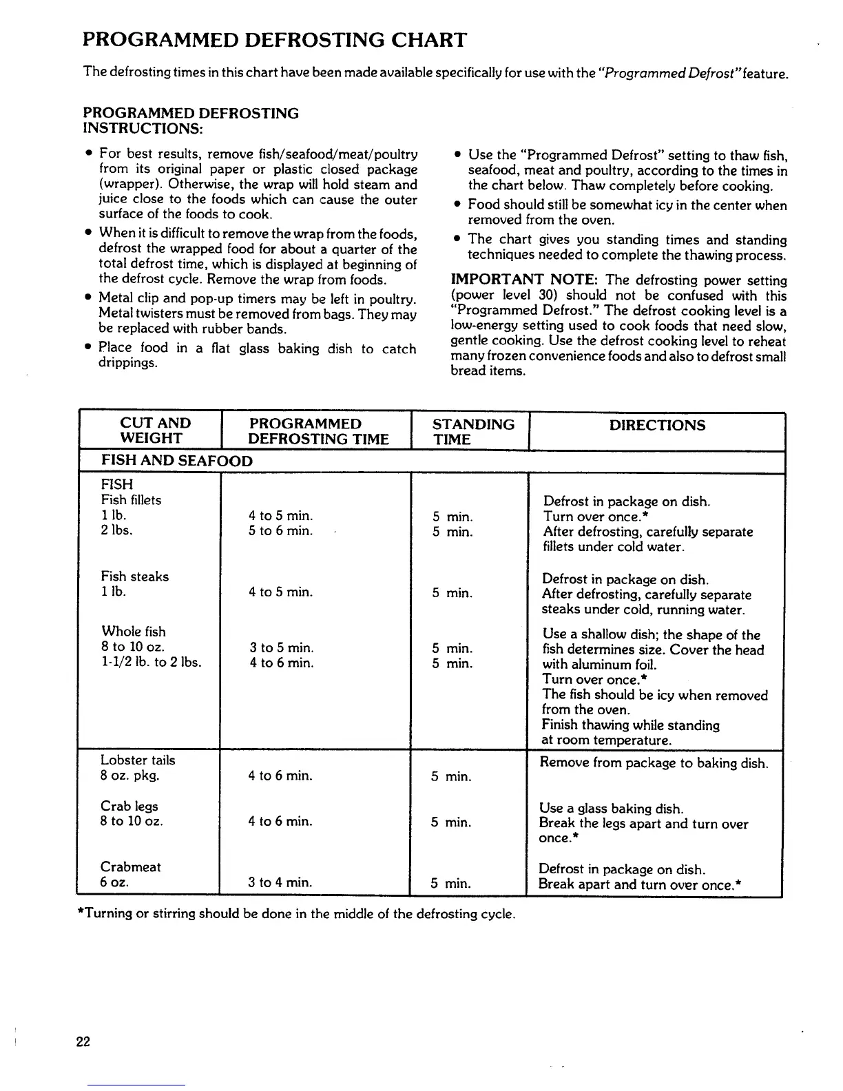 *Turning or stirring should be done in the middle of the defrosting cycle.
