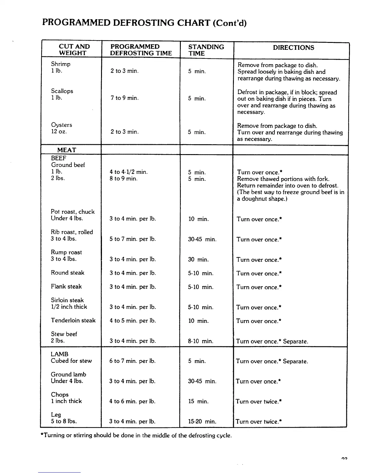 *Turning or stirring should be done in the middle of the defrosting cycle.