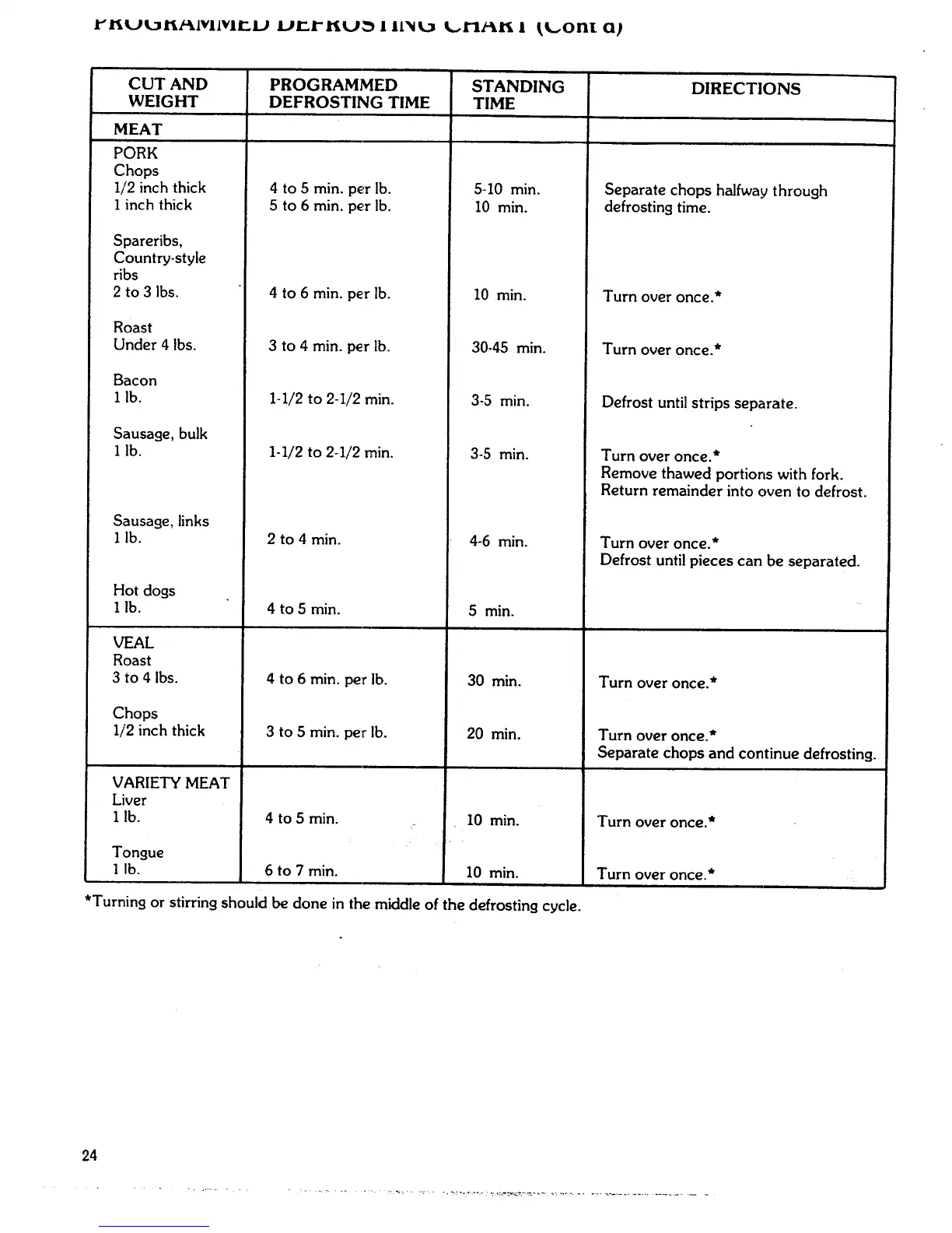 *Turning or stirring should be done in the middle of the defrosting cycle.
