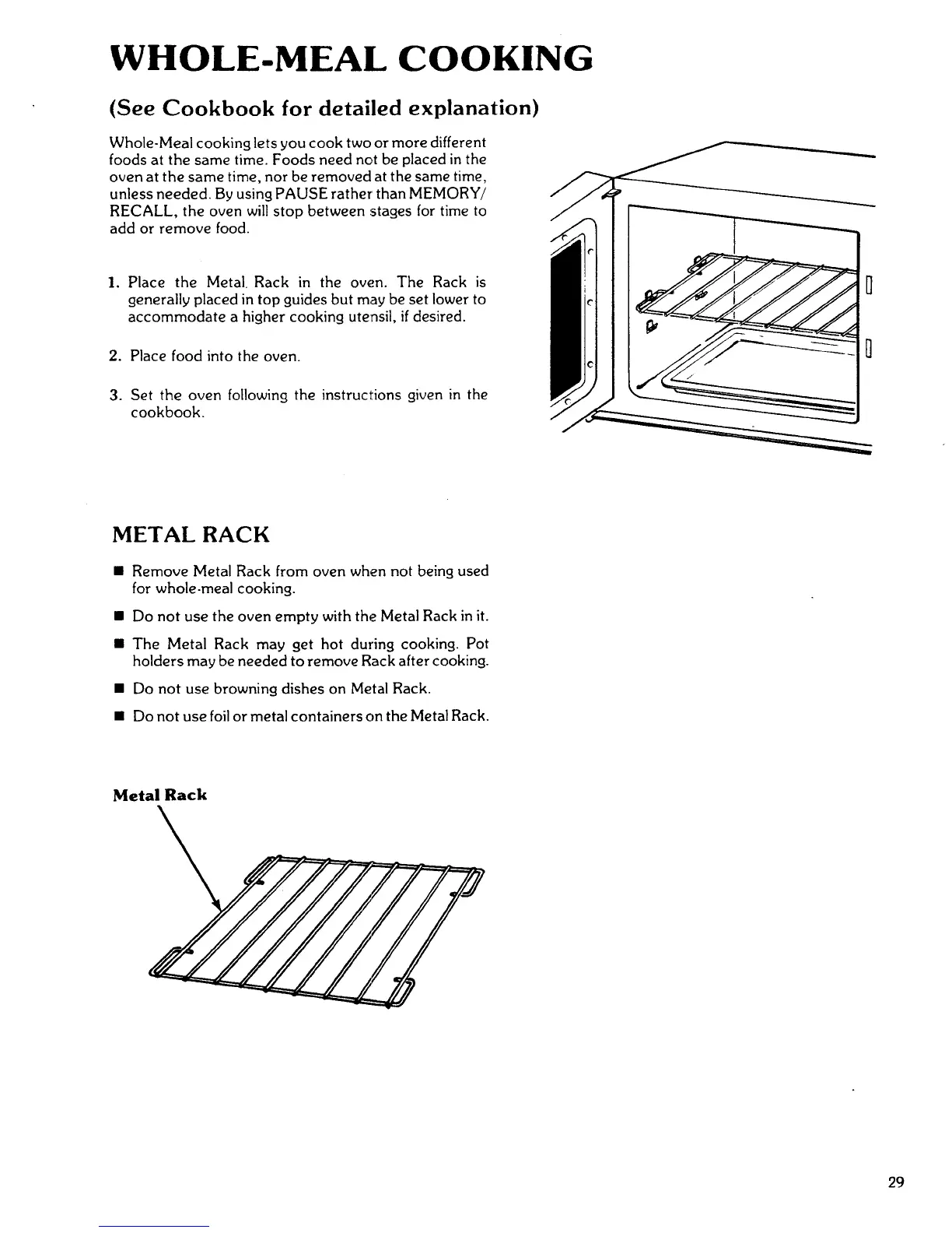 • Remove Metal Rack from oven when not being used