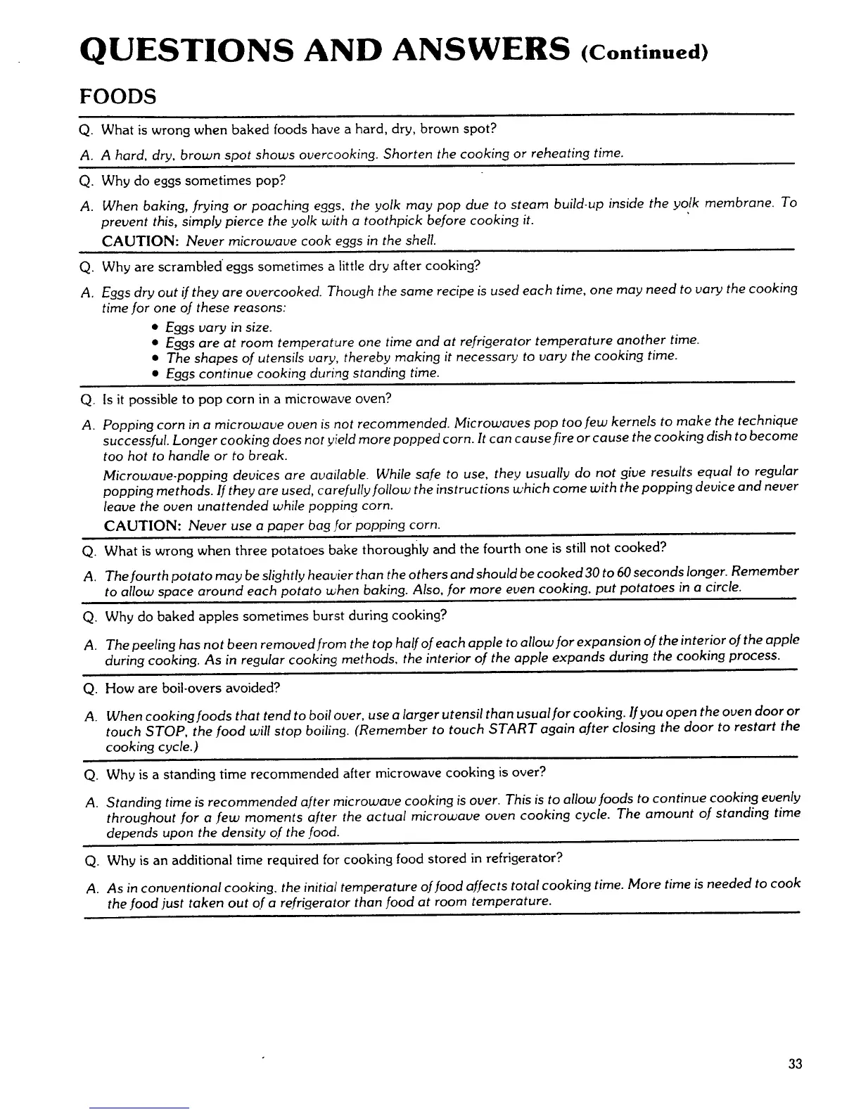 Standing time is recommended after microwave cooking is over. This is to aUow foods to continue cooking evenly