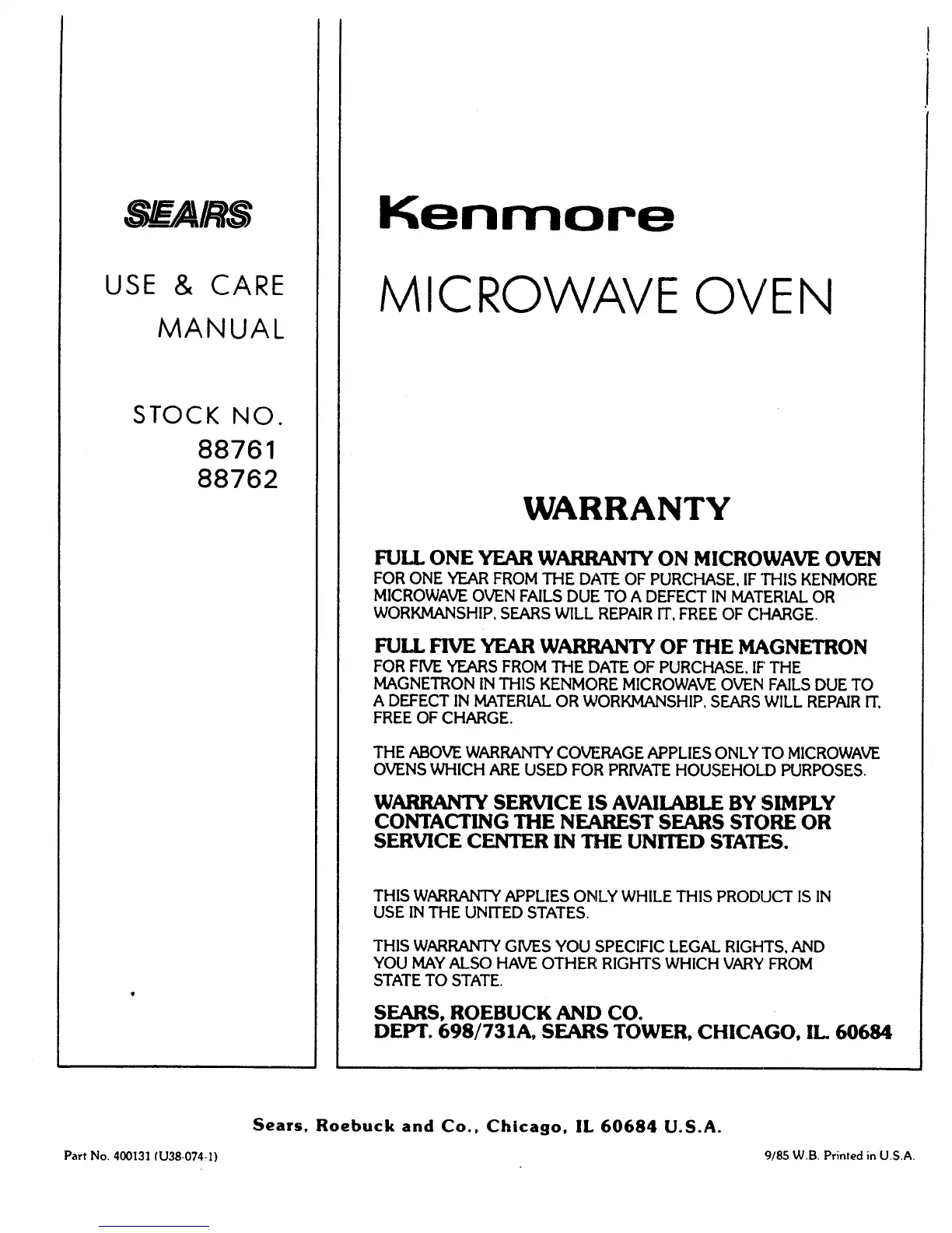 Sears, Roebuck and Co., Chicago, IL 60684 U.S.A.
