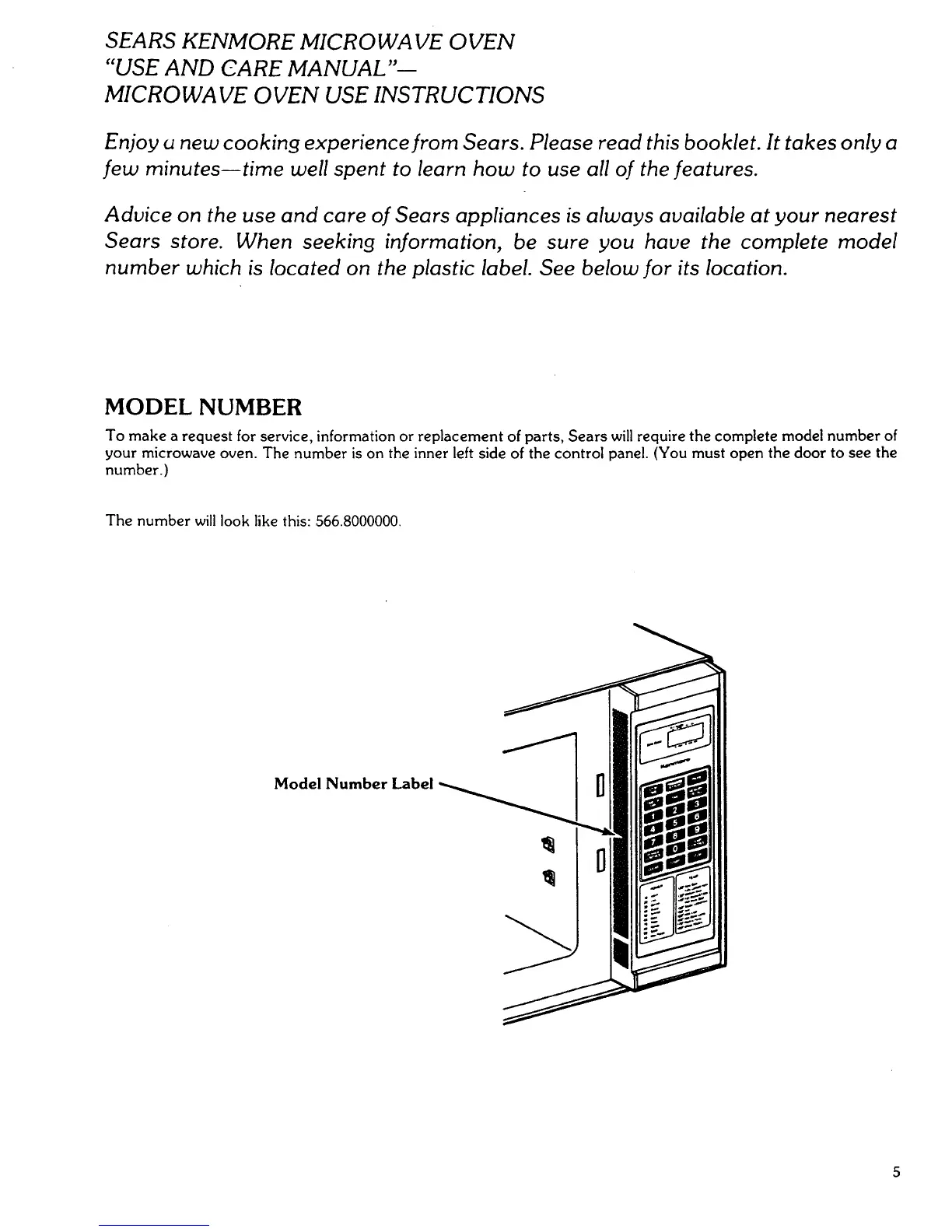 your microwave oven. The number is on the inner left side of the control panel. (You must open the door to see the