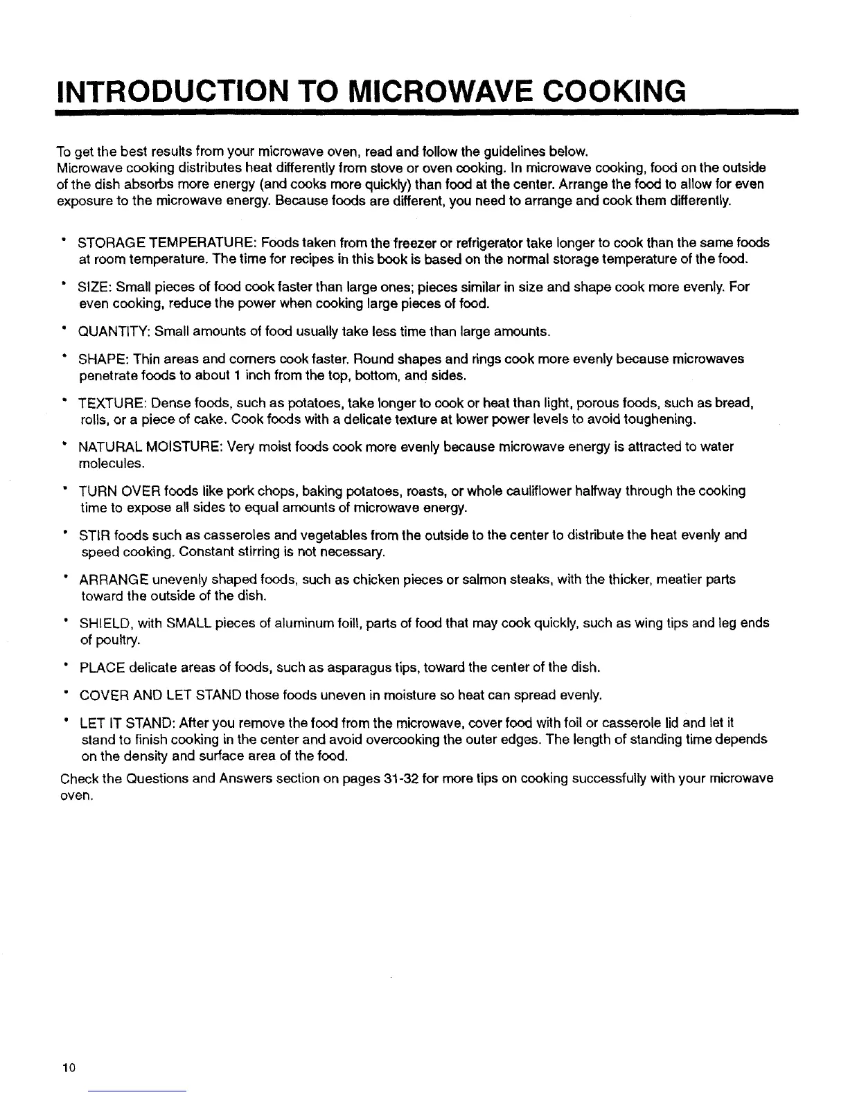 Check the Questions and Answers section on pages 31-32 for more tips on cooking successfully with your microwave