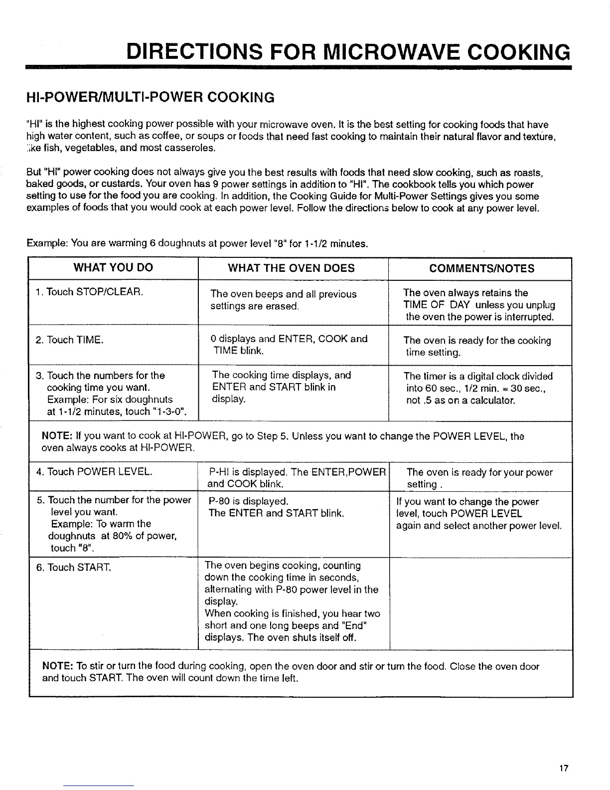 Example: You are warming 6 doughnuts at power level "8" for 1-1/2 minutes.