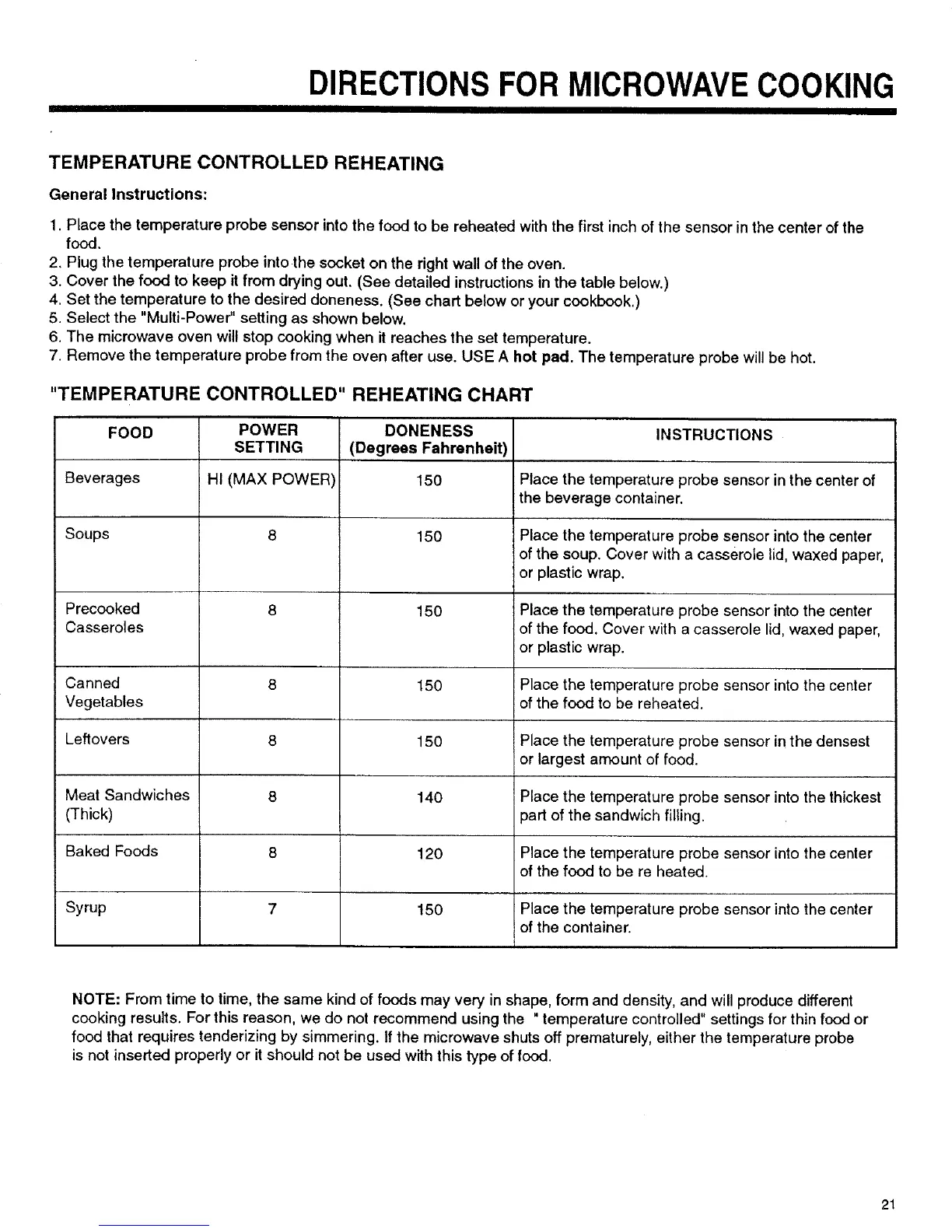 DIRECTIONS FOR MICROWAVECOOKING