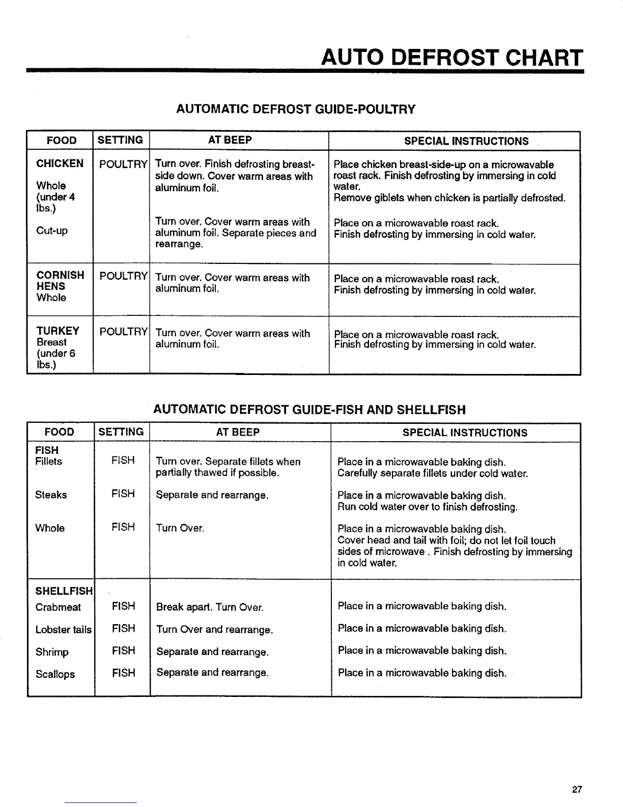 AUTOMATIC DEFROST GUIDE-POULTRY