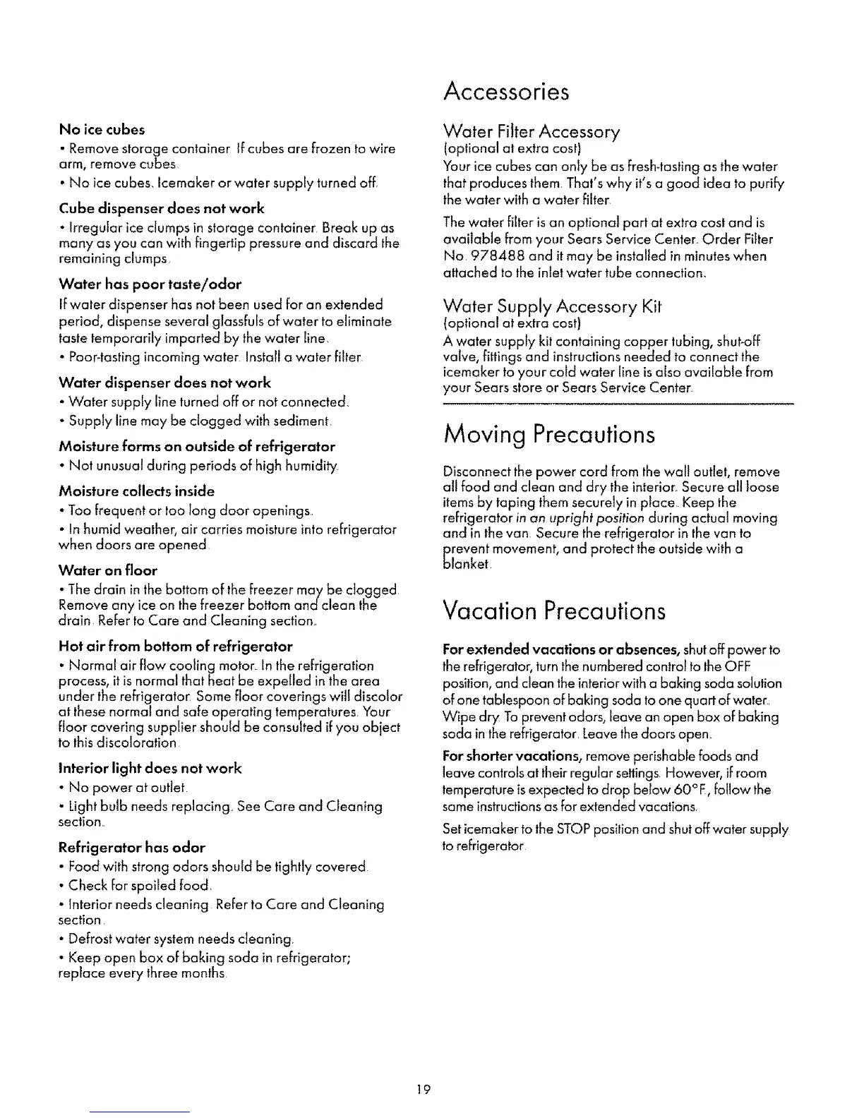 available from your Sears Service Center. Order Filter