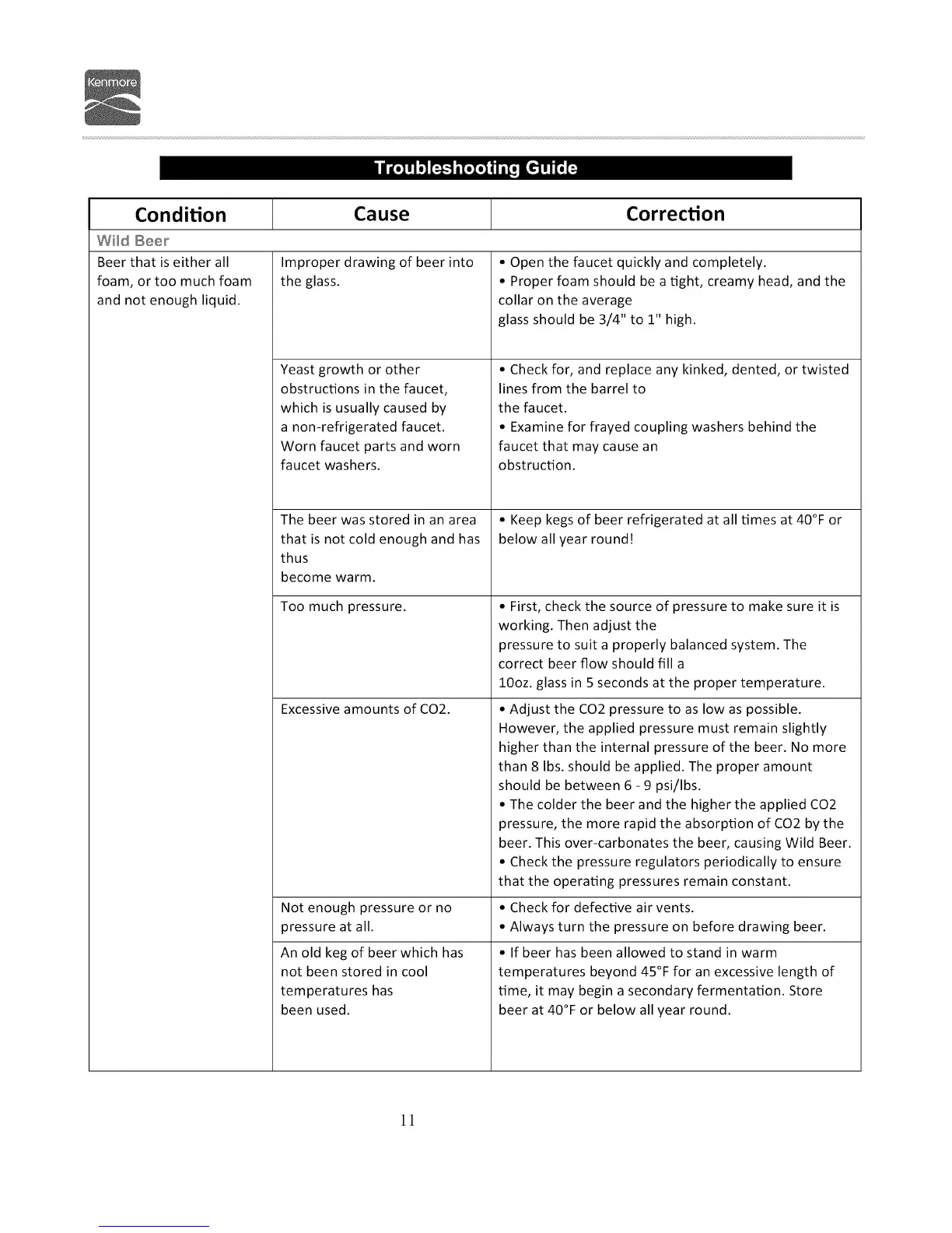 • Keep kegs of beer refrigerated at all times at 40°F or