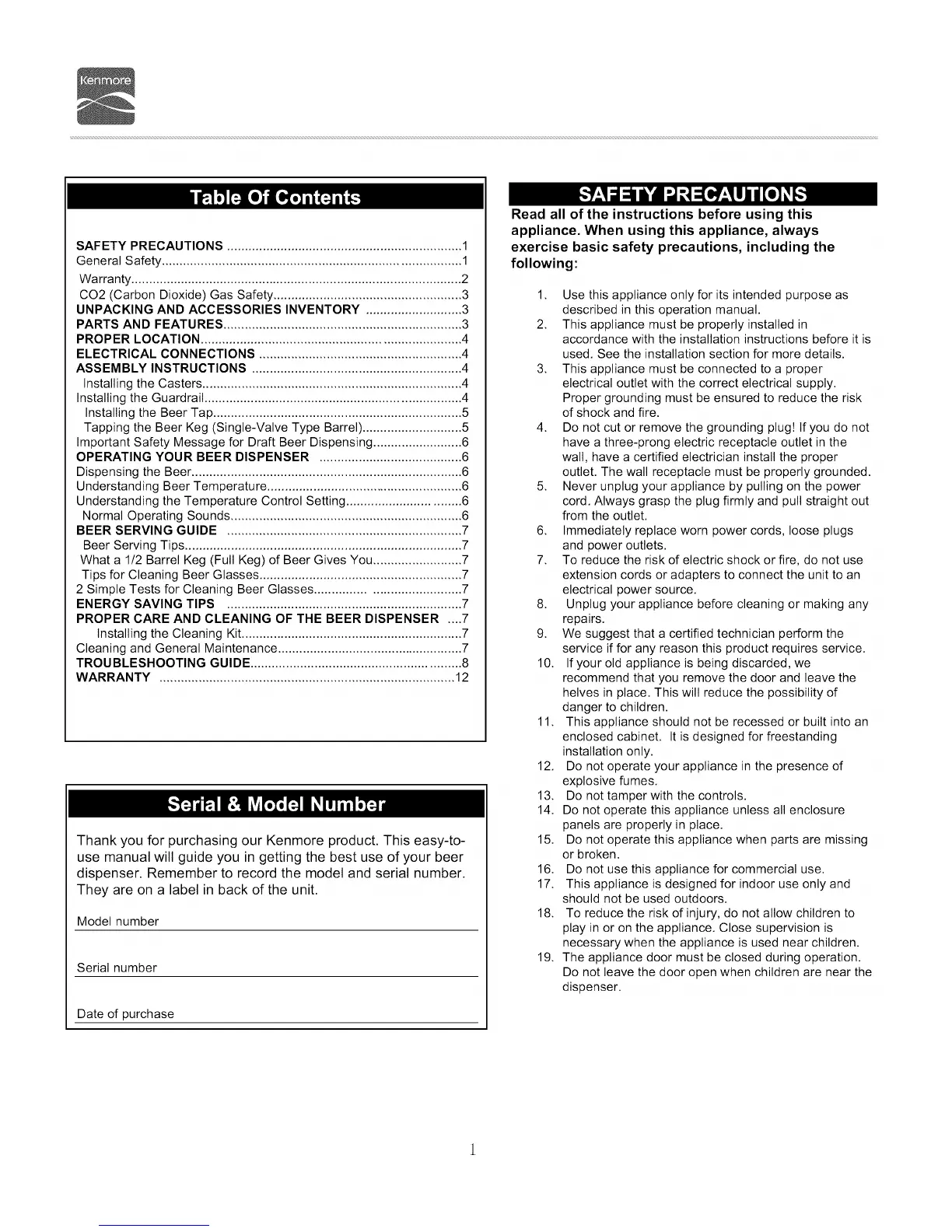 Thank you for purchasing our Kenmore product. This easy-to-