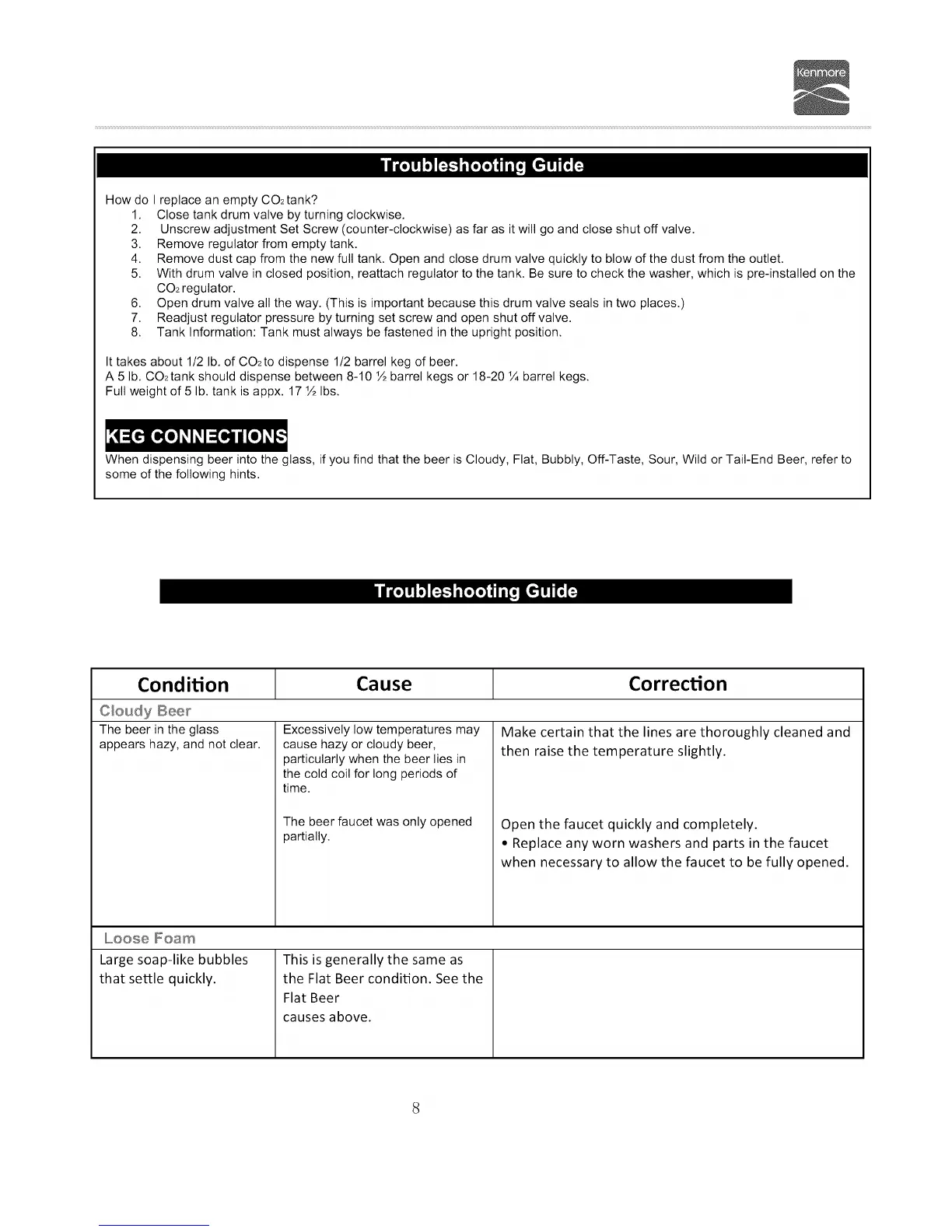 A 5 lb. CO2tank should dispense between 8-10 ½ barrel kegs or 18-20 1¼barrel kegs.
