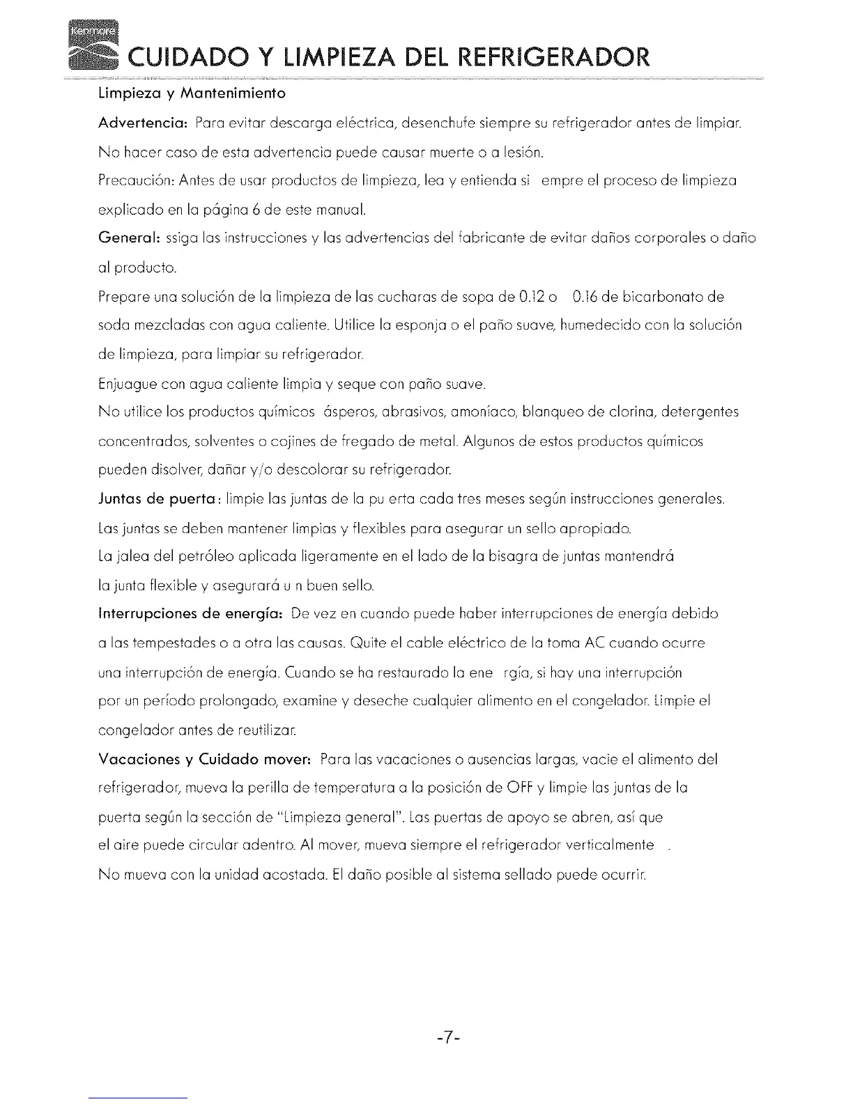 Advertencia: Para evitar descarga el6ctrica, desenchufe siempre su refrigerador antes de limpiar.