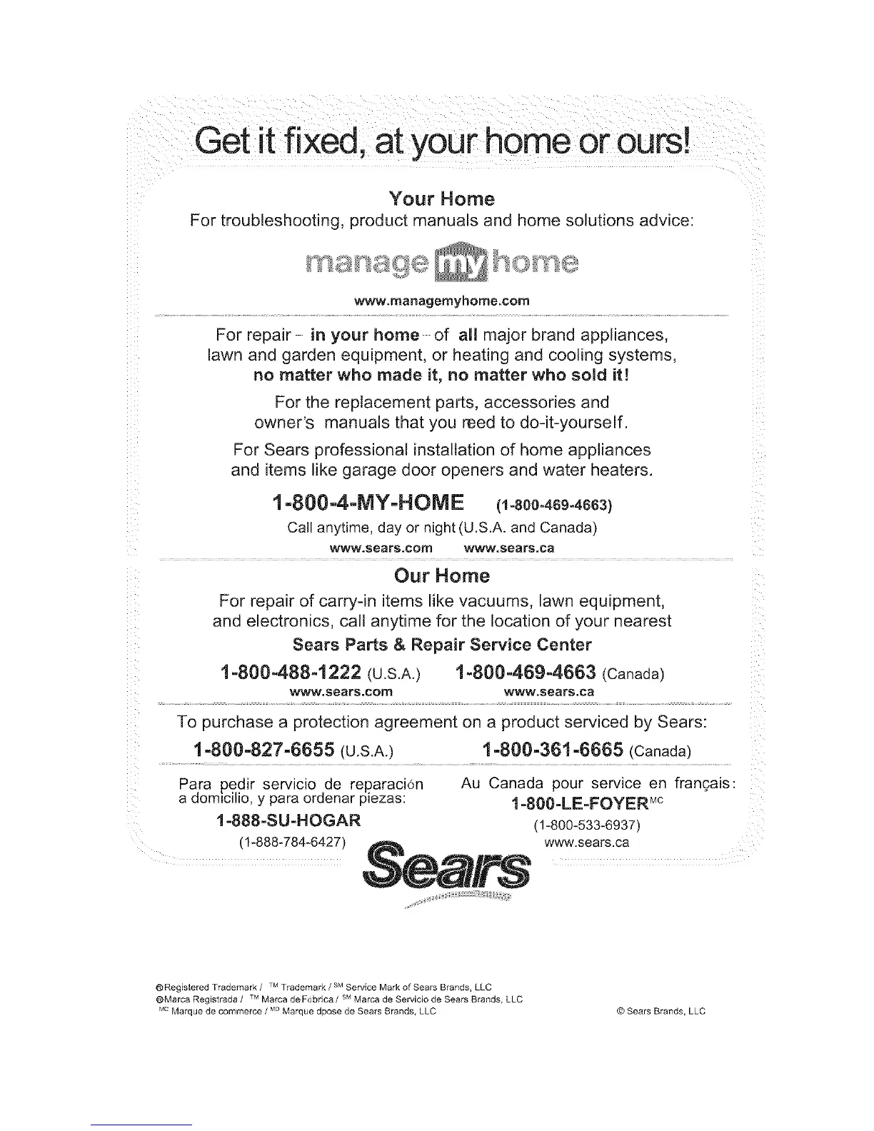 @Marca Registrada / Marca de F6brica / Marca de Servicio de Sears Brands, LLC