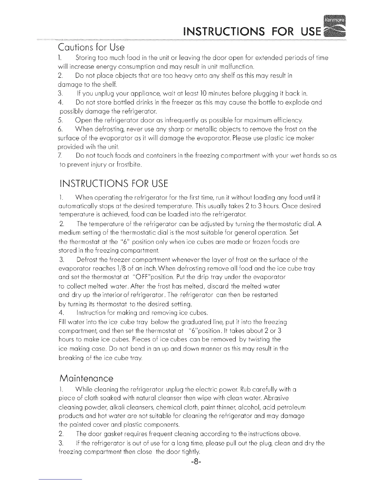 surface of the evaporator as it will damage the evaporaton Please use plastic ice maker