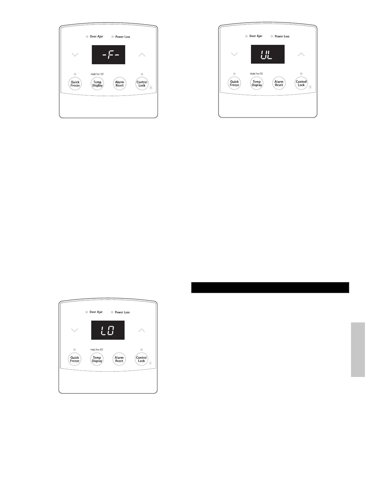 (bloqueo de los controles) y "Temp Display" (indicador de