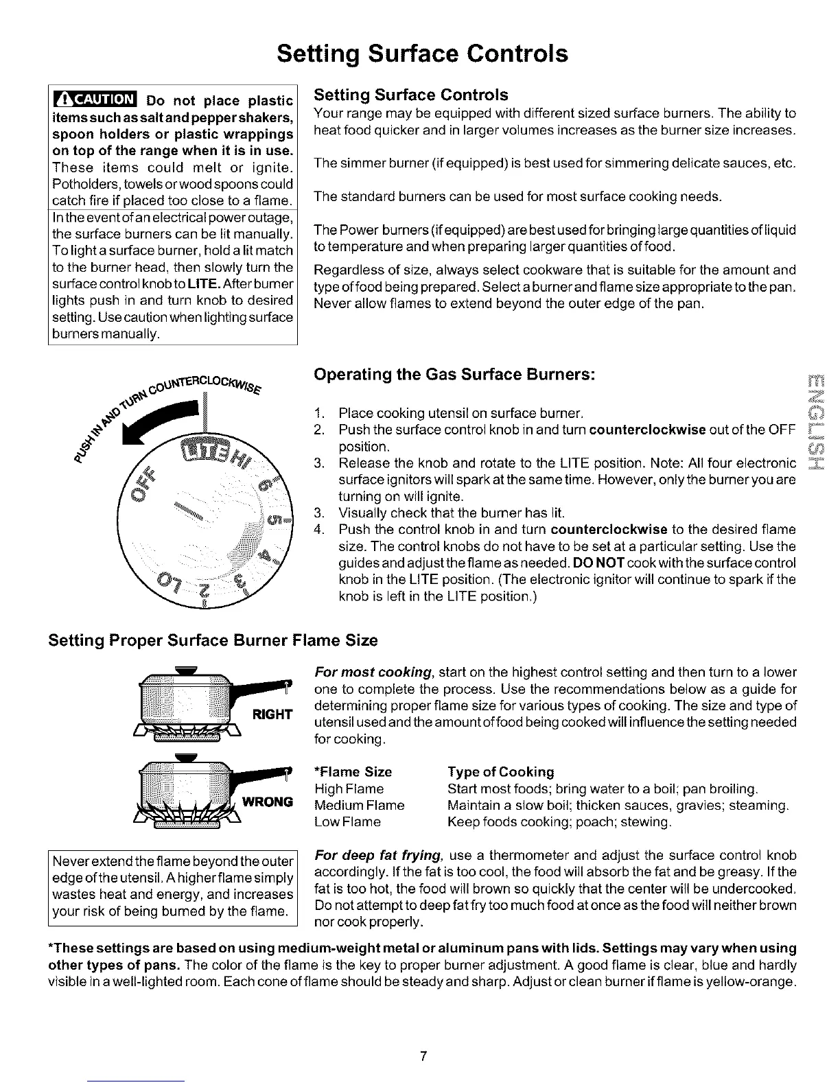 guides and adjust the flame as needed. DO NOT cook with the surface control