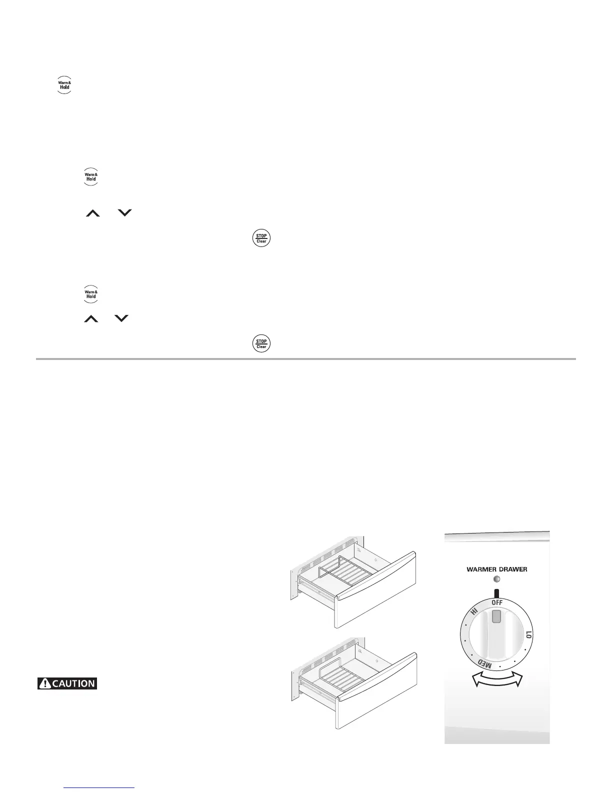 Note: Use the warmer drawer to keep hot foods hot such as: vegetables, gravies, meats, casseroles, biscuits and rolls, pastries