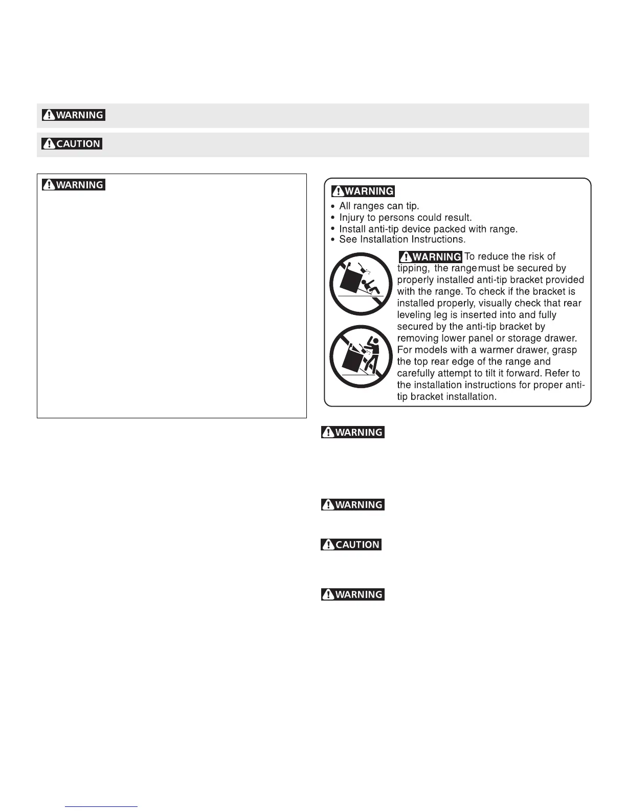 • Never modify or alter the construction of a range by removing