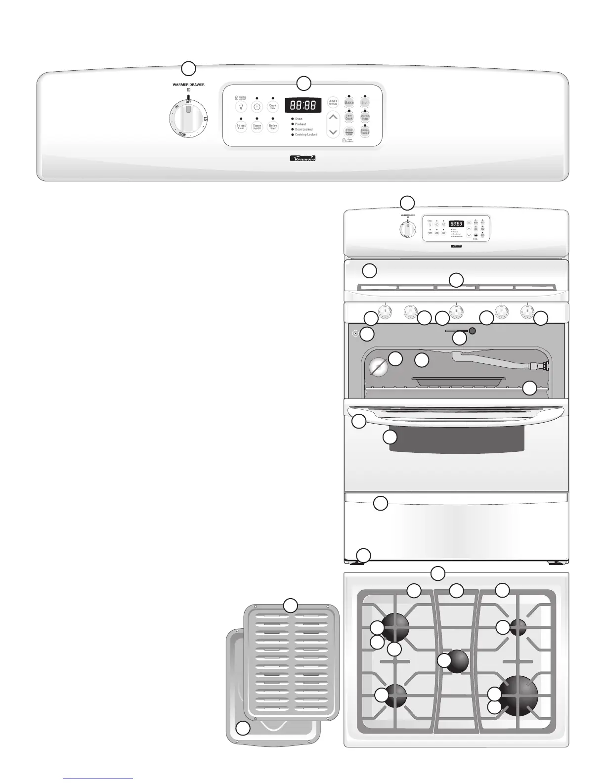 9. Warmer Drawer Control & Indicator Light (some models).