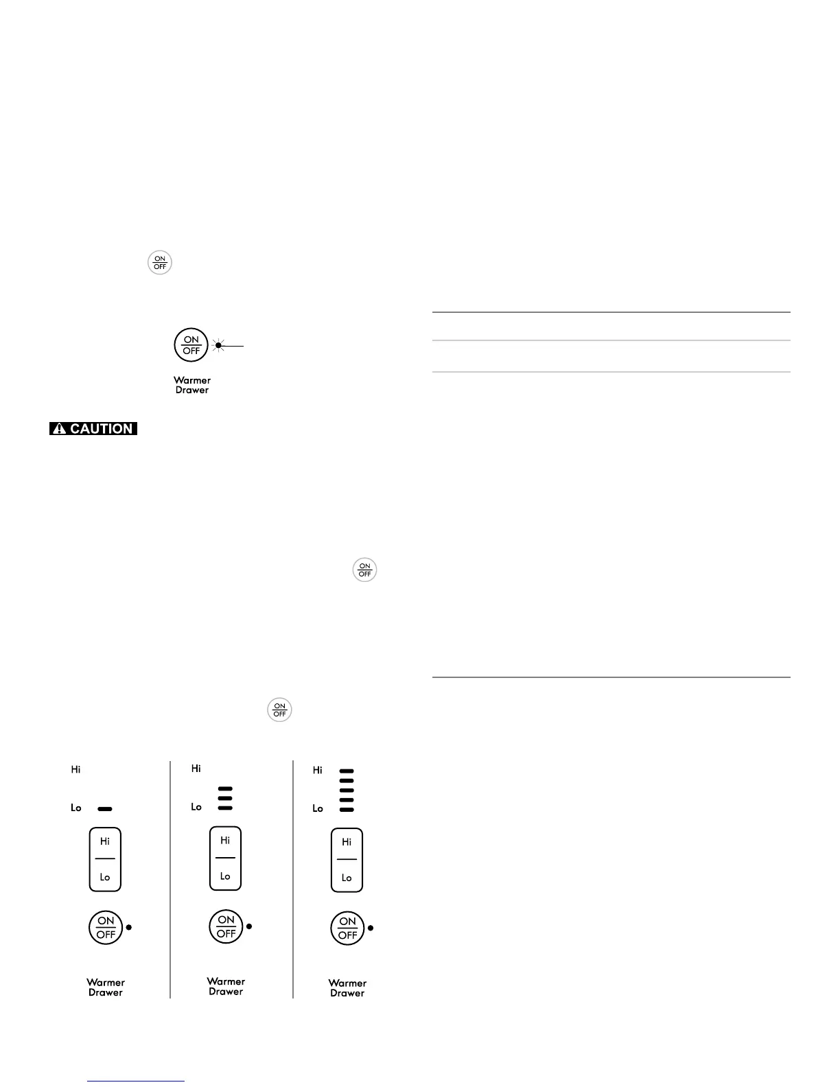 warmer drawer ON and OFF and make temperature