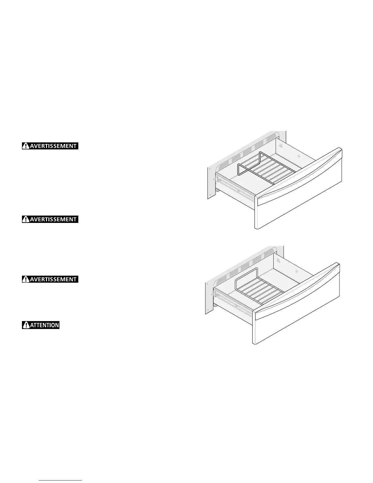 La grille du tiroir chauffant peut être utilisée de 2 façons :
