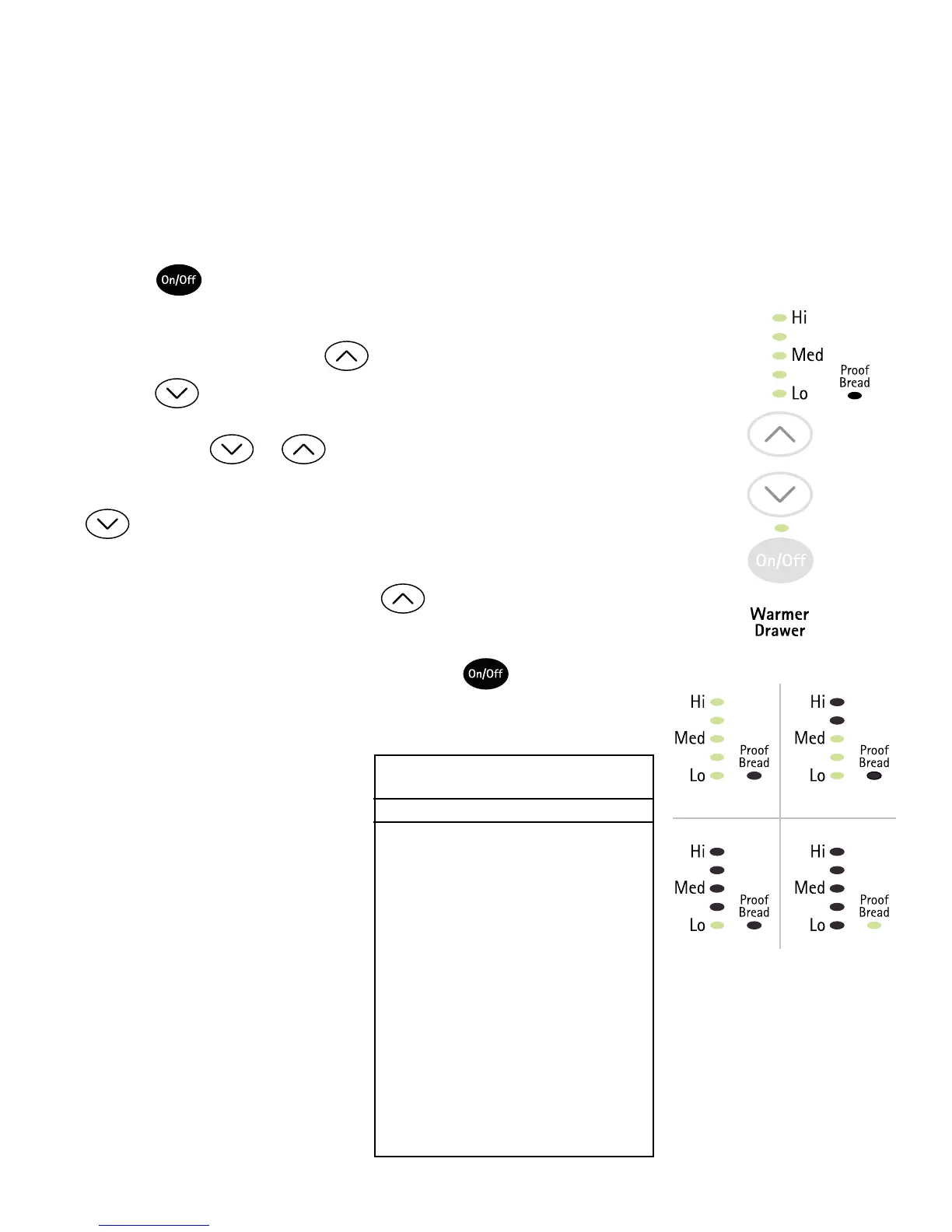 To Set the Warmer Drawer & Bread Proofing Controls: