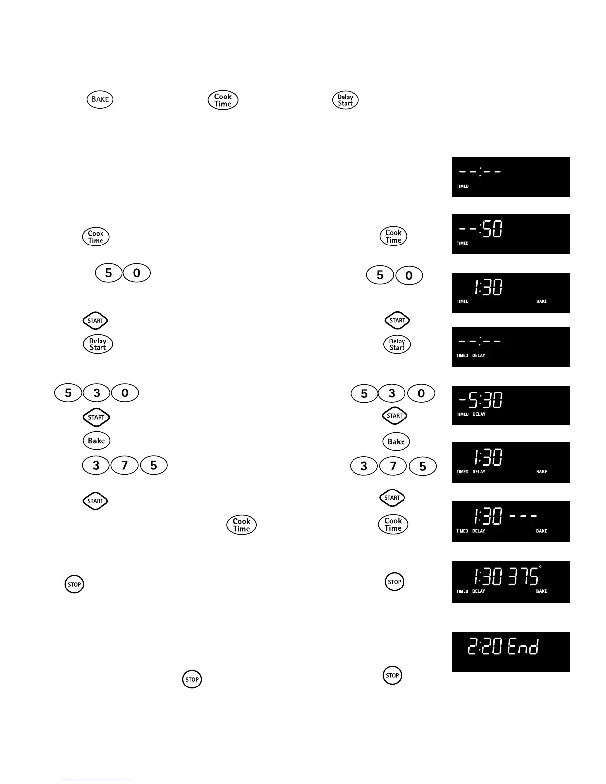 The BAKE , OVEN COOK TIME and DELAY START pads control the Delay Start feature. The