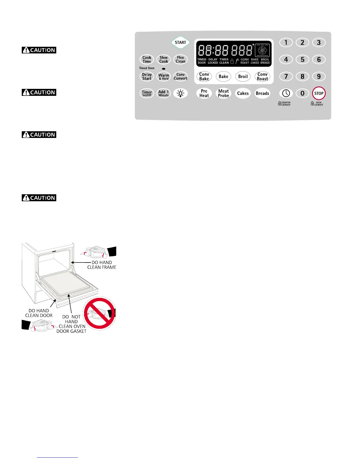 • DO NOT clean the oven door gasket. The woven material of the oven door