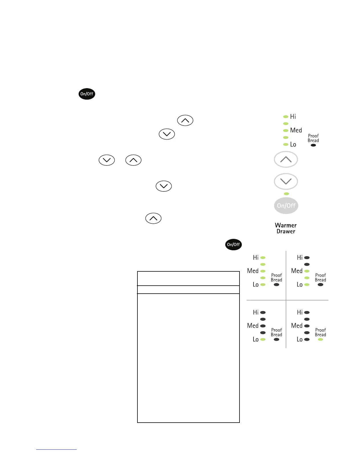 1. Appuyez sur la touche de la zone WARMER DRAWER (Tiroir chauffant). Le voyant du