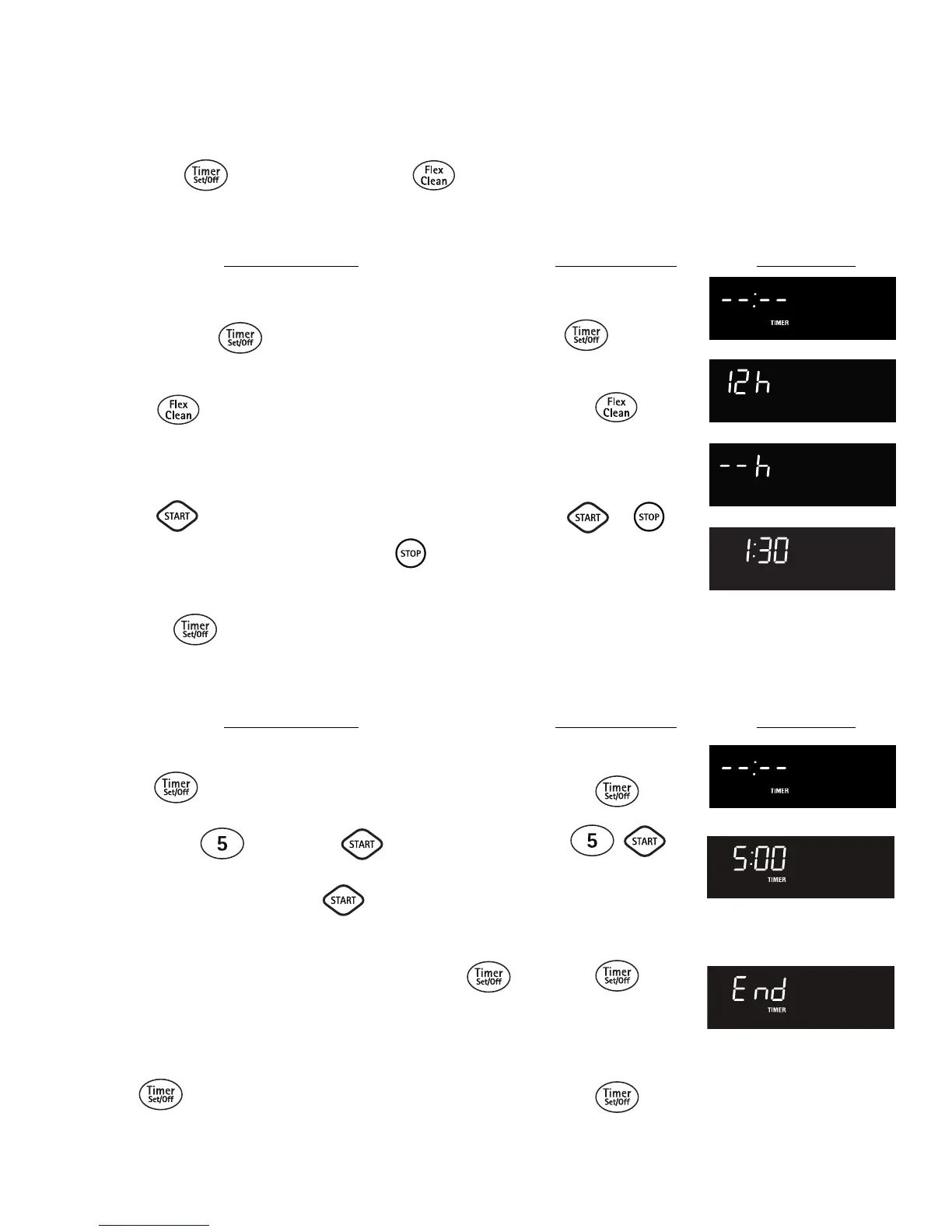 Les touches TIMER (Minuterie) et FLEX CLEAN (Autonettoyage) commandent les fonctions de cuisson continue ou