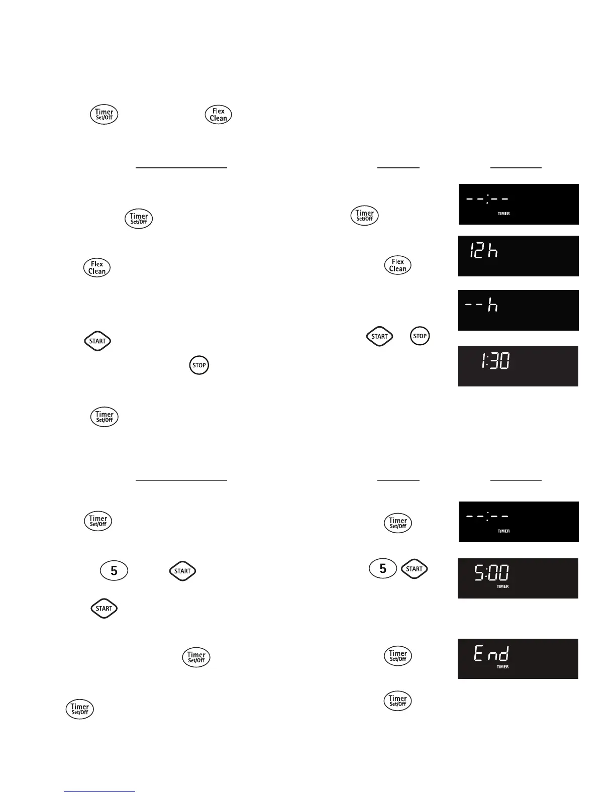The TIMER and FLEX CLEAN pads control the Continuous Bake or 12 Hour Energy Saving features. The