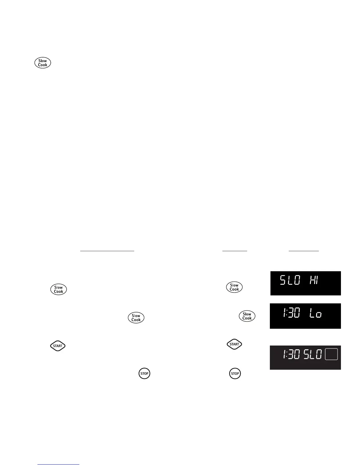 The SLOW COOK pad is used to activate this feature. The Slow Cook feature may be used to cook foods more