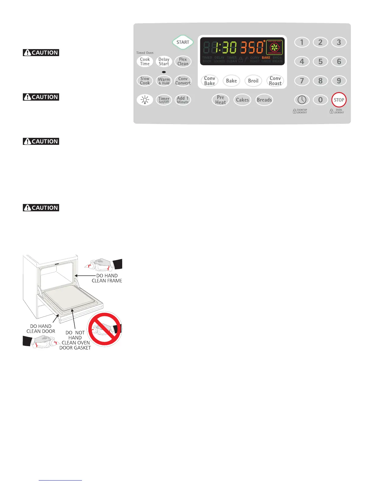 • DO NOT clean the oven door gasket. The woven material of the oven door