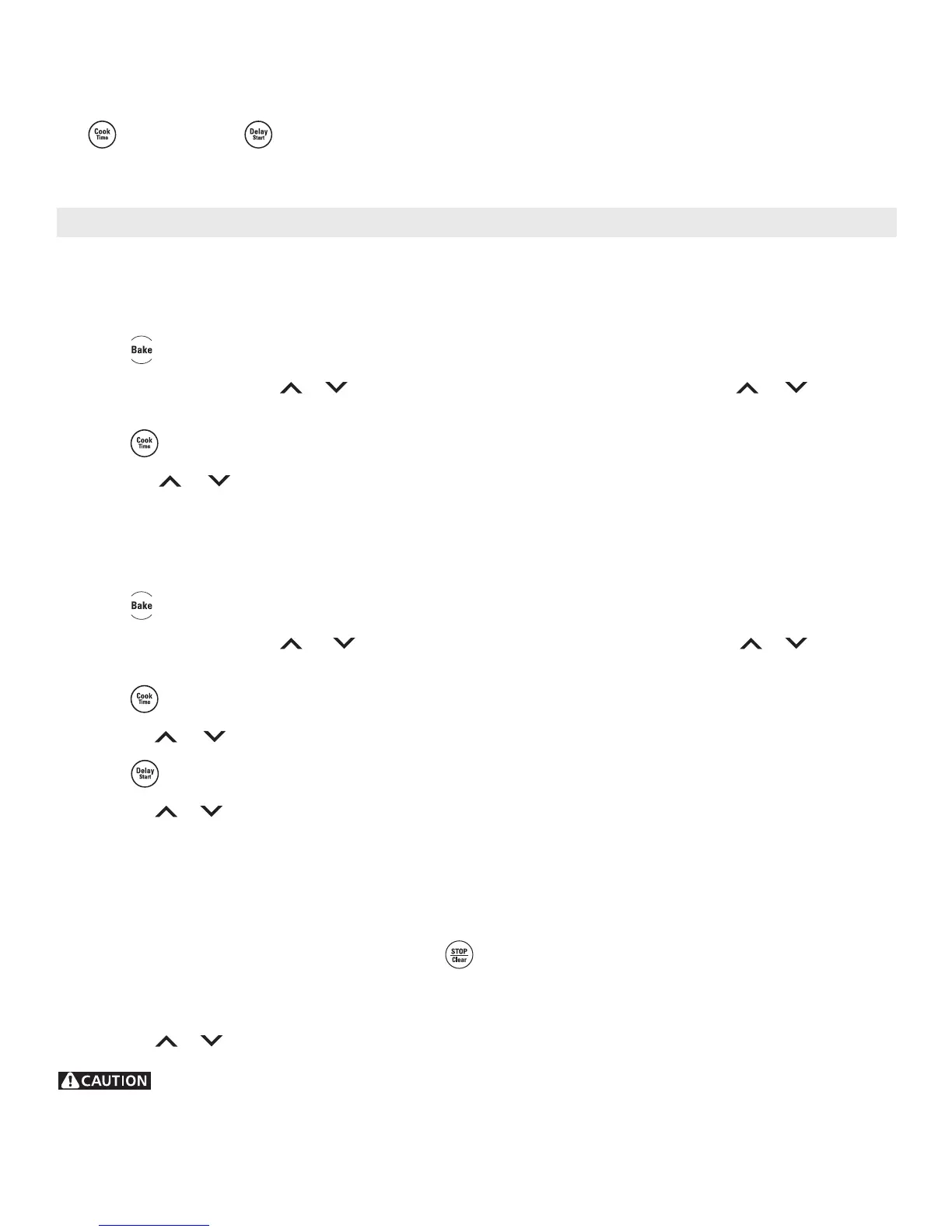 To Set the Timed Bake and Delay Start Features
