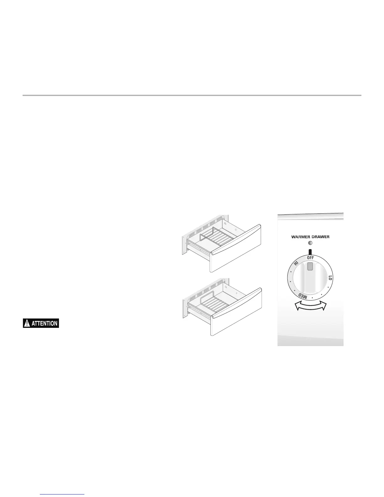 Le tiroir chauffant est muni d’un loquet qui requiert l’utilisation de force additionnelle pour ouvrir et fermer le tiroir.
